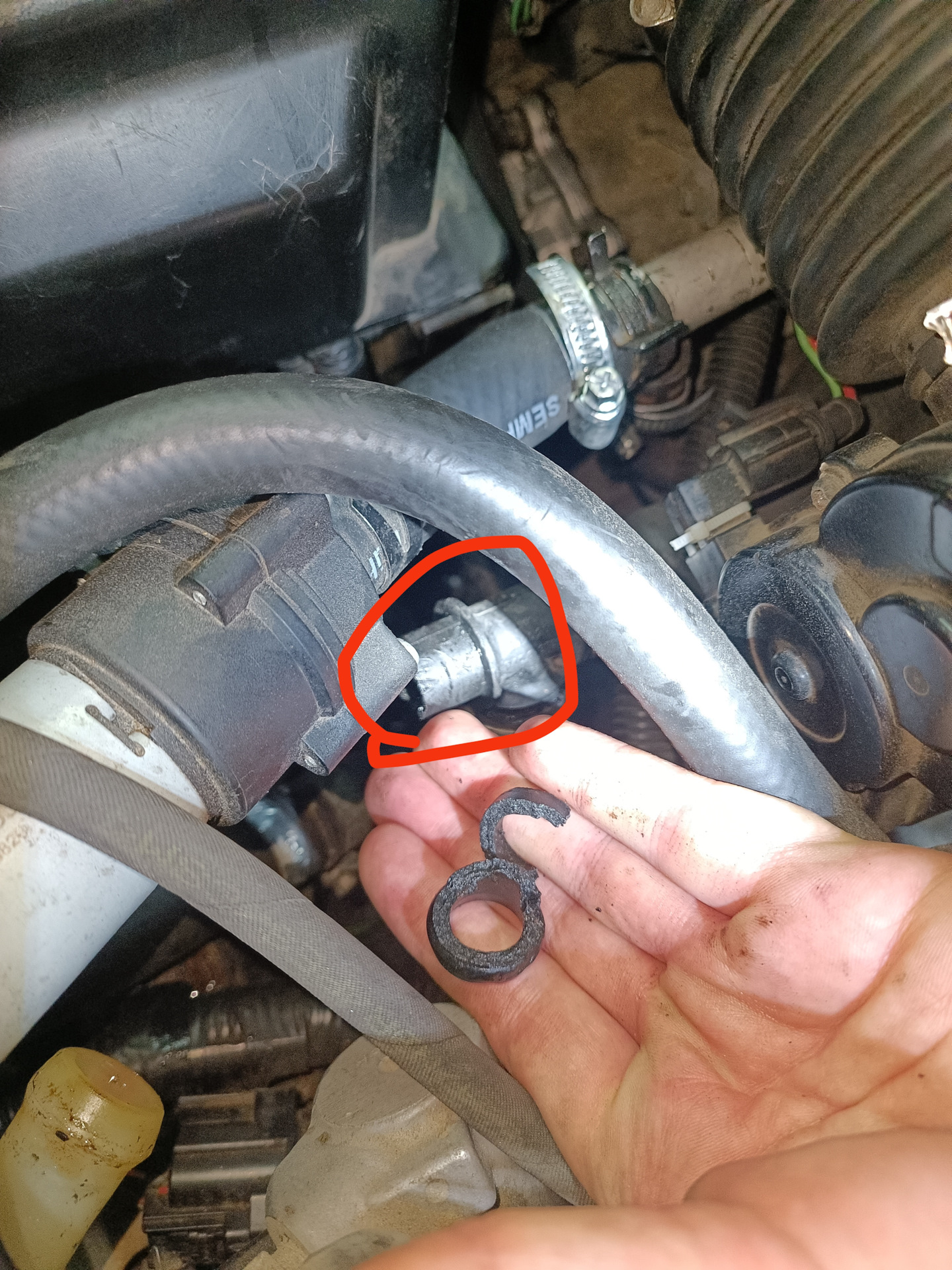 Как когда то писал есть проблемы с перегревом, вернее машина выплевывает антифриз. С утра на работу еду 25 км, прохладно — без проблем. Назад в жару на пол пути стрелка уже выше середины, а иногда и в красной зоне, приходилось даже доливать. Напомню что крышка у меня на 0,65 атм сделана. Опытным путем вычислил что без давления выплевывает гораздо больше и быстрее. А полный 1бар при таком количестве старых шлангов не хочу. Ну тут всё ясно, пробой какой то прокладки гбц. Это уже как бы не секрет. Но пока хочется поездить (пока коплю детали) и решил немного поковыряться в системе охлаждения. Некоторые сюрпризы от прошлых ездунов нашел…