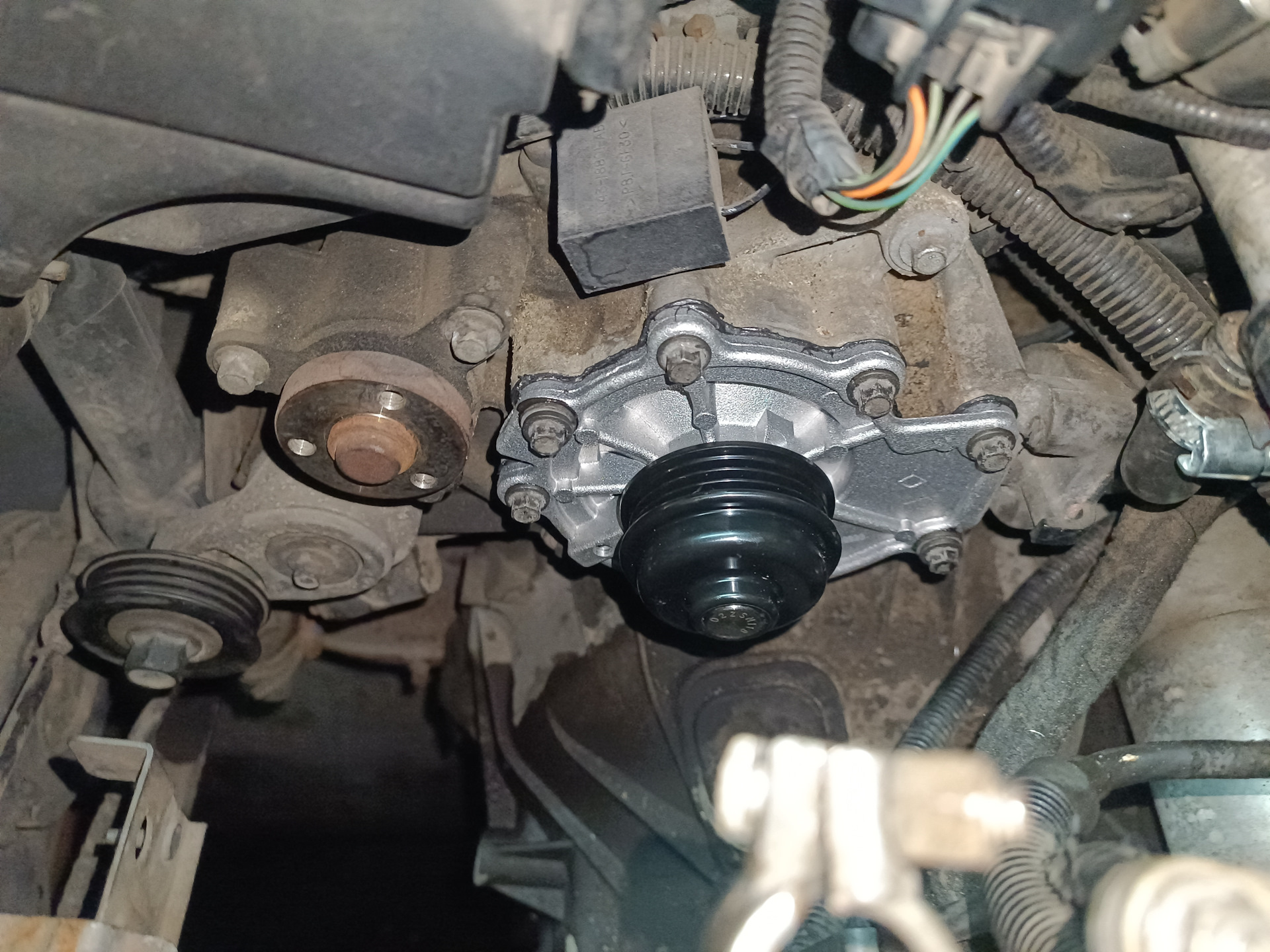 Снимаю приводной шкив помпы, и помпу. Всё открутилось со скрипом. Но болты не лопнули.