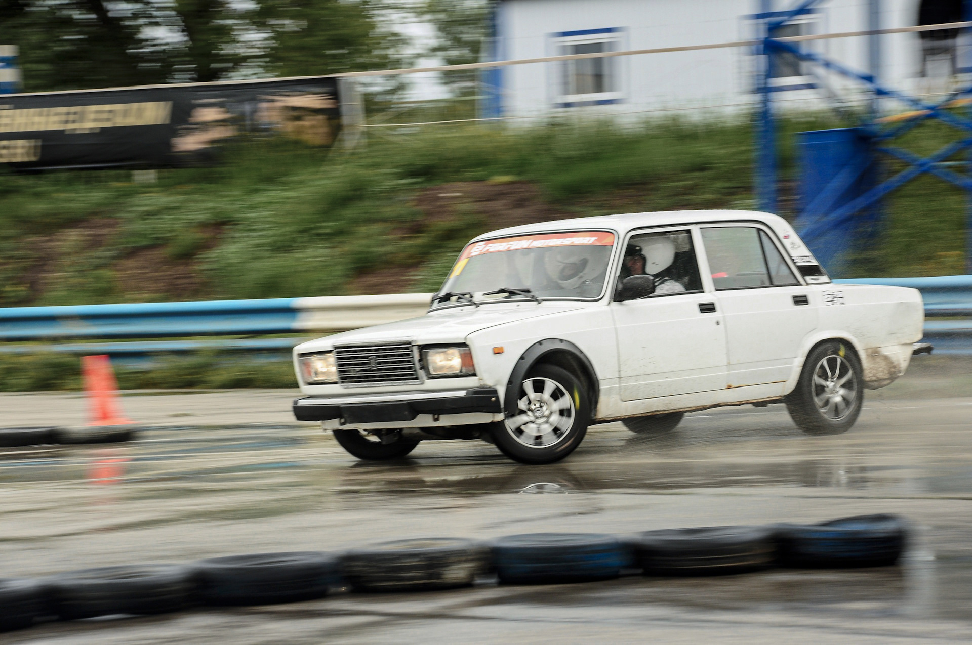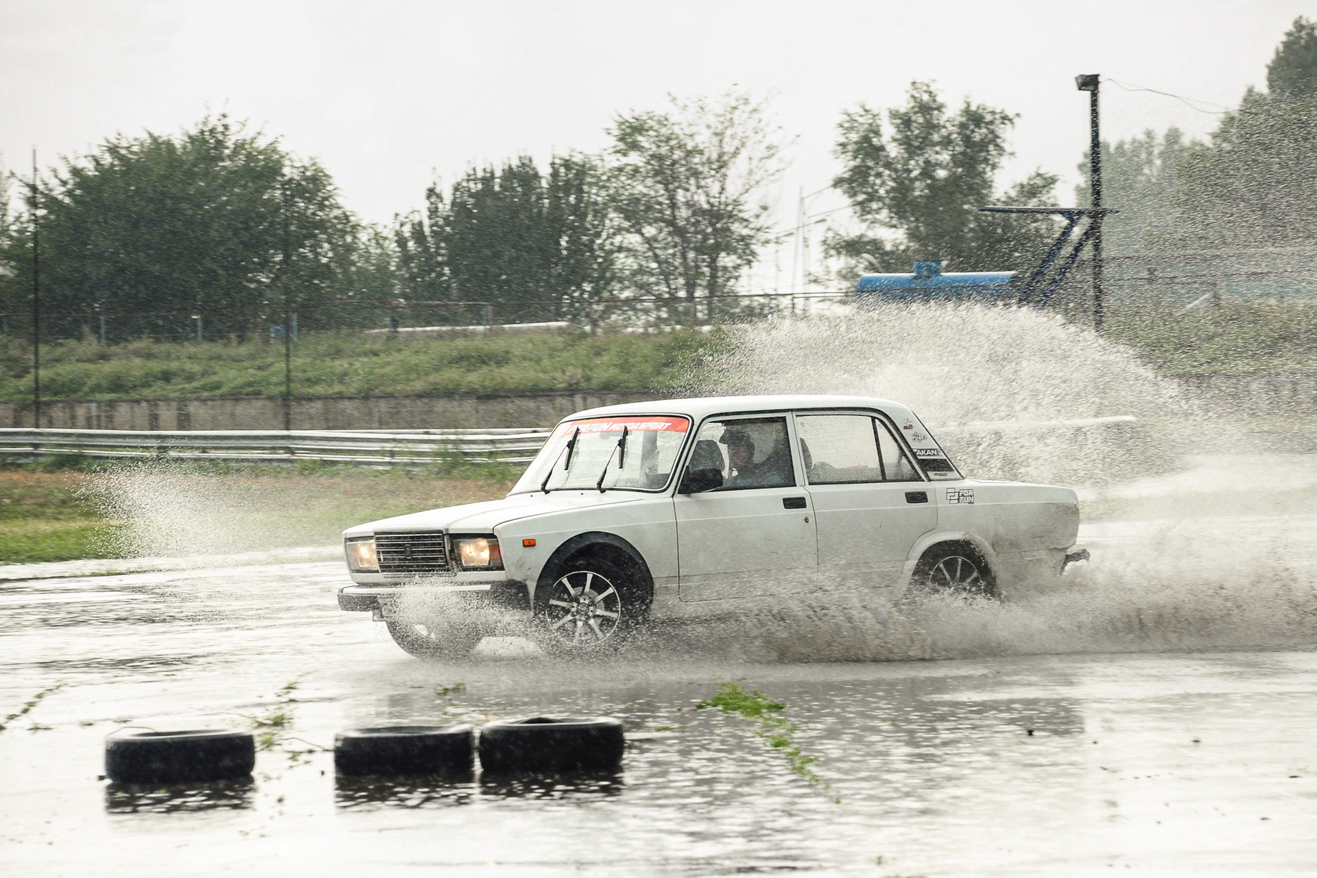 На субботних тренировках с утра и до обеда лил дождь, на трассе были огромные лужи, но было весело 😁