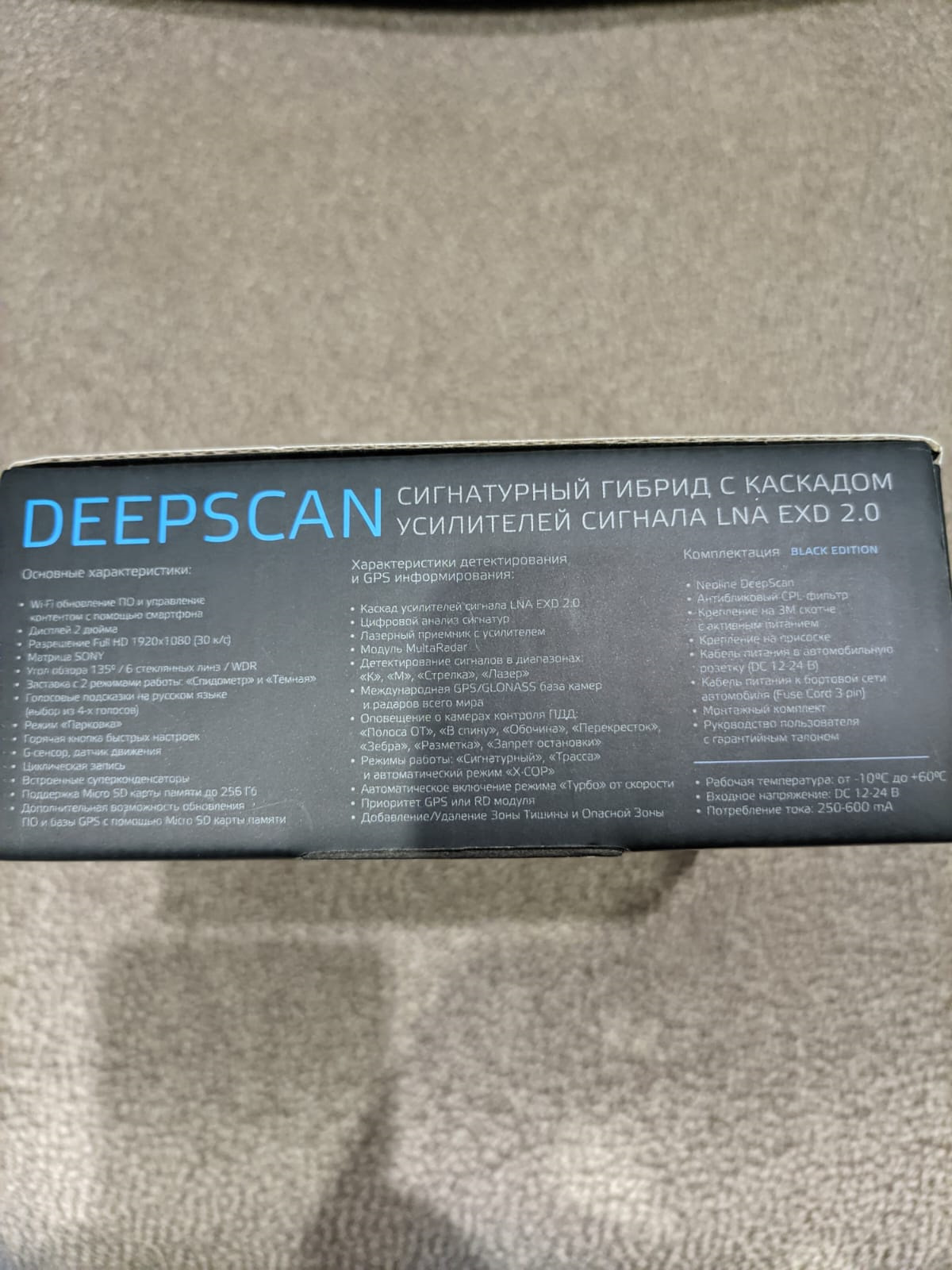 DEEPSCAN — это именно то устройство, которое сочетает в себе новые передовые технологии детектирования, GPS-информирования, съемки видео, обновления ПО с помощью Wi-Fi. А так же, высокое качество видео с помощью матрицы от SONY. В комбинации с много линзовой оптикой достигается качество видео высокого уровня при любом освещении. Благодаря широкому углу обзора 135 градусов в кадр попадает четыре полосы дороги и обочина.