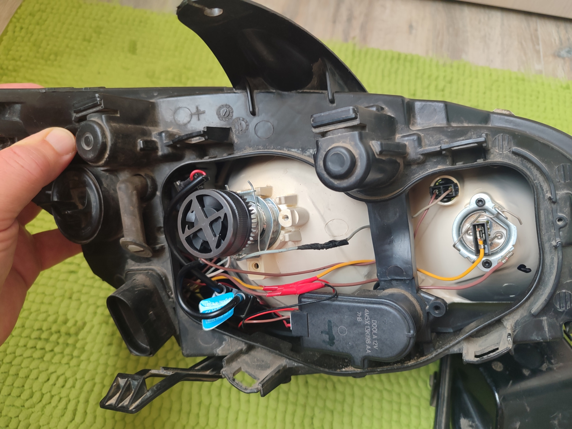 Это был уже не первый мой ретрофит, так что все по накатанной: разборка фар в коробке с феном, снятие хрома с масок и покраска в чёрный мат с баллона, чёрная полоса на жёлтый в секции по воротника, линзы 3" с Али (2000₽) с креплением на гайку в отверстие лампы ближнего. Бленды выбирал, чтобы были похожи на оригинальный биксенон, но точно таких не нашёл, купил скругленные (500₽). Брал все по дешману. В итоге свет не устроил. Лучше галогена, но не топ. Может дело в ледлампах?
