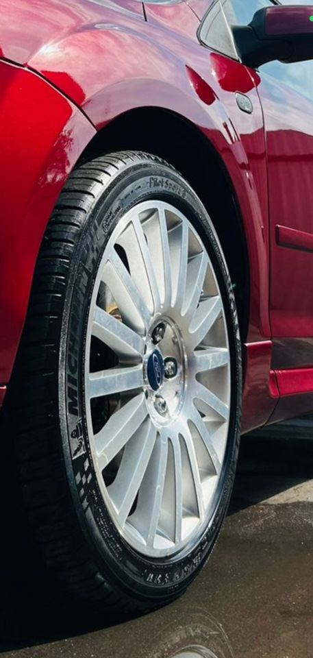 Раньше, когда у меня был третий мондео, мечтал поставить на него обвес от ST220 и 18 диски. Но тогда не сложилось. И вот настало время вишенки примерить новые ботиночки!) Купил на Юле случайно у человека, который владел ST220, но разбил его на зимних дисках и продал, а летний комплект 18 пролежал несколько лет на даче. Я их забрал за 20000₽ самовывозом, помыл и положил до весны, но они пролежали 2 года, потому, что из-за гнилых порогов машину нельзя было поднять домкратом и я ездил летом и зимой на 15-ой липучке!