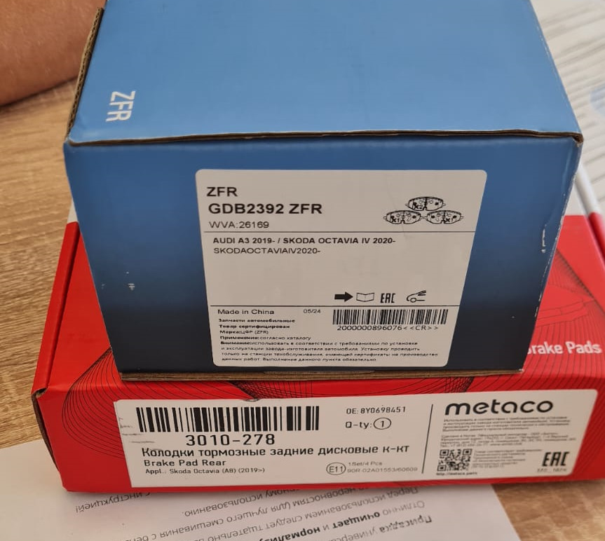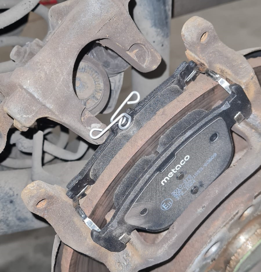 В качестве эксперимента решил воткнуть самый дешман, который только бывает. Это первый раз в жизни, когда я пихаю неоригинальные колодки и решил, если кроить, то по полной) Заранее скажу, что на удивление оно в отличие от родных колодок не скрипит и вполне неплохо тормозит.