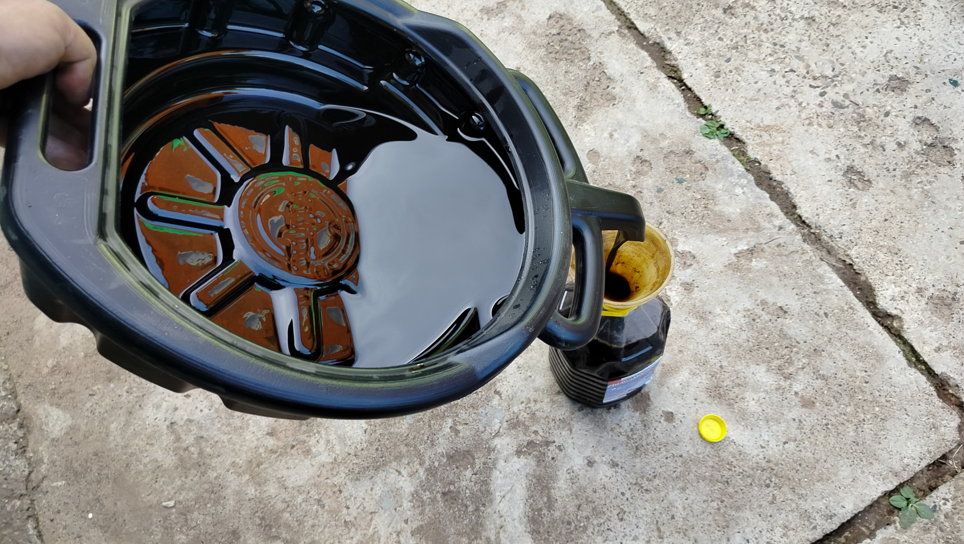 А так тазик оказался довольно таки удобной штукой. Как для слива масла с мотора, так и перелива с тару для хранения…