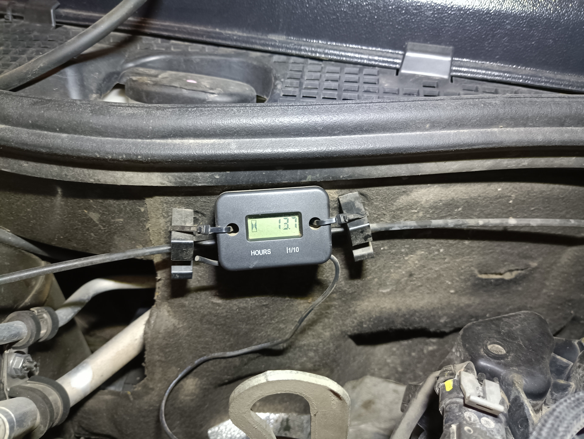 Так же для контроля смены масла, решил ориентироваться не только по пробегу, но и по моточасам, установил простенький счетчик.