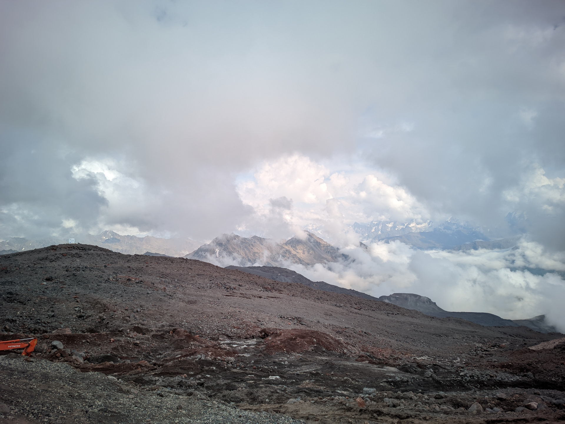 Выше можно было подняться только на технике, снегоход, чтобы подняться немного выше от 2000 и далее с человека. Мы пешком поднялись на несколько метров, до снега, разочек подскользнулся, там уже не побегаешь, появляется одышка. Переносят такую высоту не все, но мы чувствовали себя нормально в целом.
