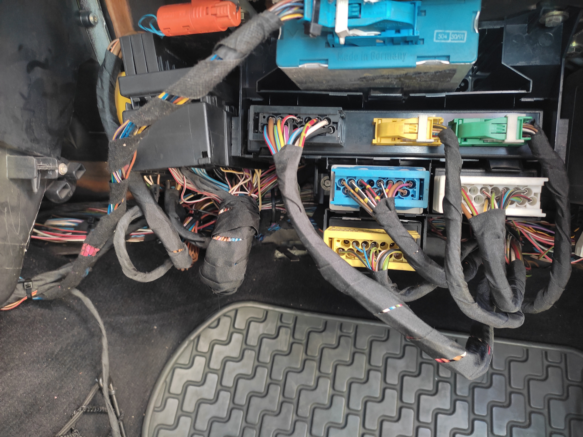 Можно использовать оригинальную колодку и закрепить её вместе с реле в бардачке на месте крепления точек соединения (там же стоит реле EWS), направляющие уже есть.