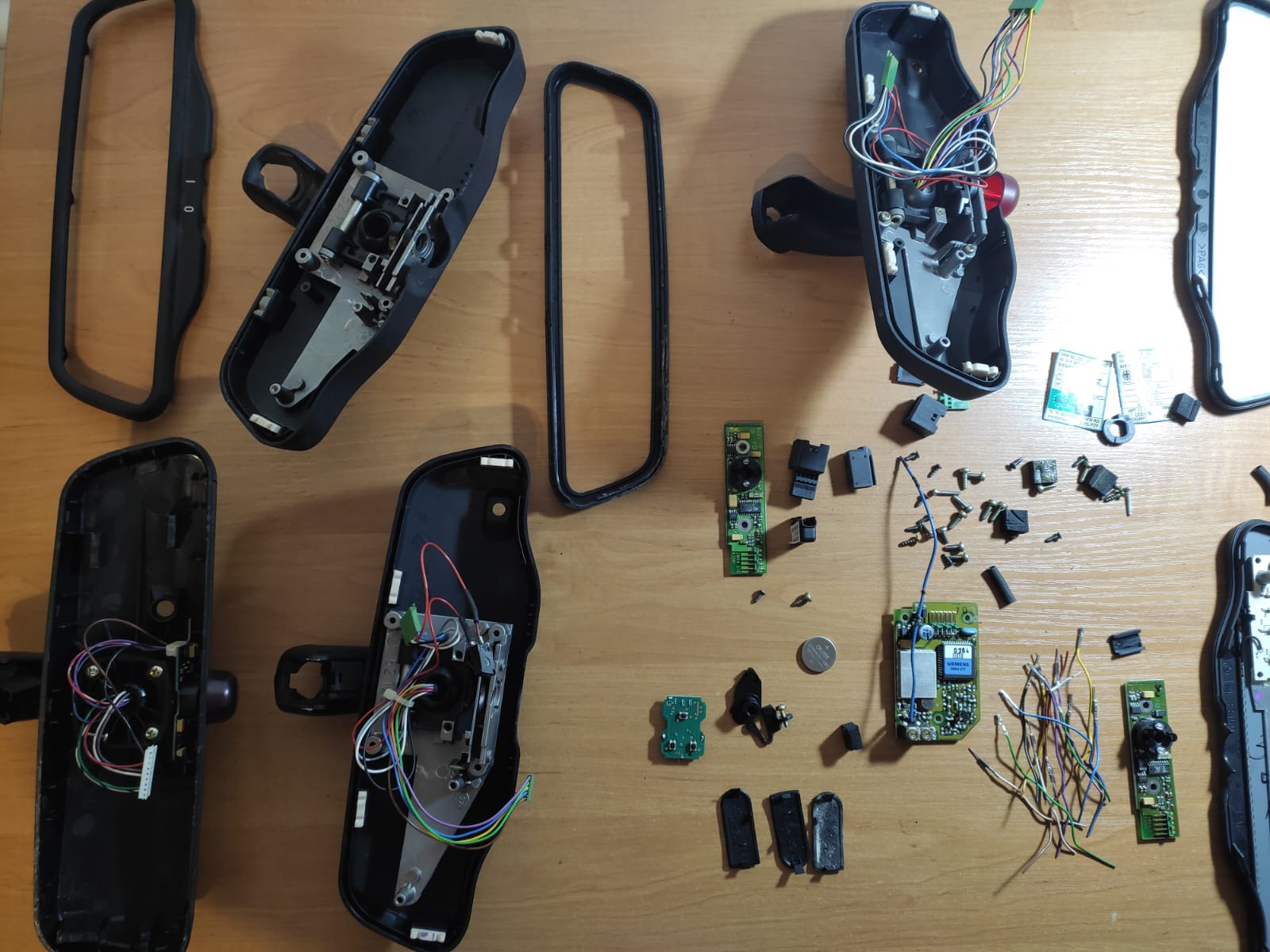 В итоге от старых зеркал и опытов осталась такая вот куча запасных частей, корпусов, штекеров, блока 433 МГц итд, будет впрок, мало ли.