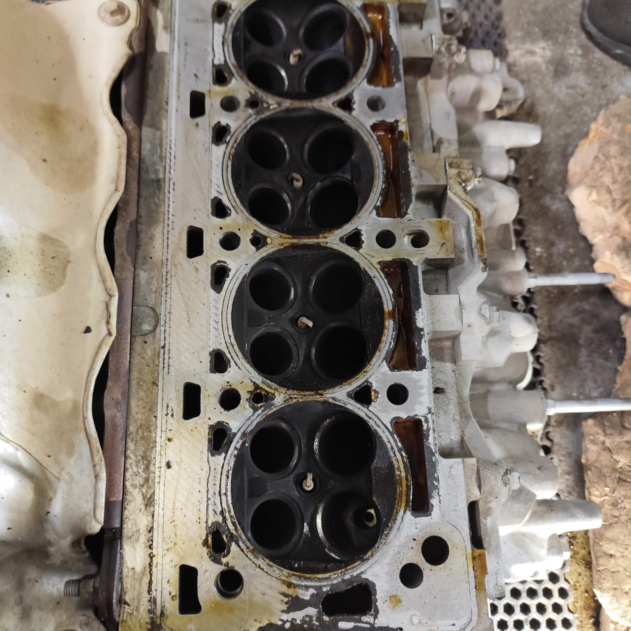 '16 прекрасных, оригинальных, идеальных клапанов'. Судя по нагару, клапана совсем не идеальны для 94 тысяч, да и на помпе явно герметик левый.