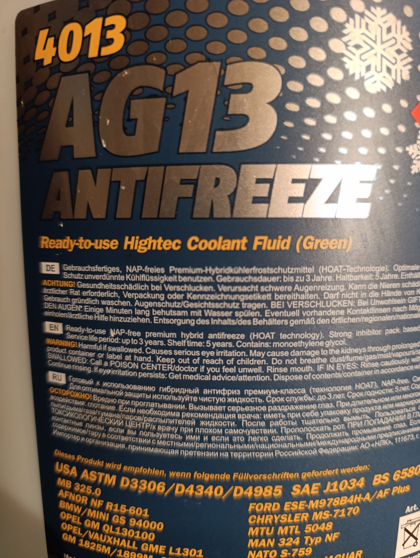 Верно родной антифриз жёлтый G12+. Перед заливкой проверяю на кислотность PH должно быть от 7 до 11.5. Плотность 1.04 до 1.115. Проверяю температуру закипания и немного кипячу, если появляется осадок несу назад продавцу.