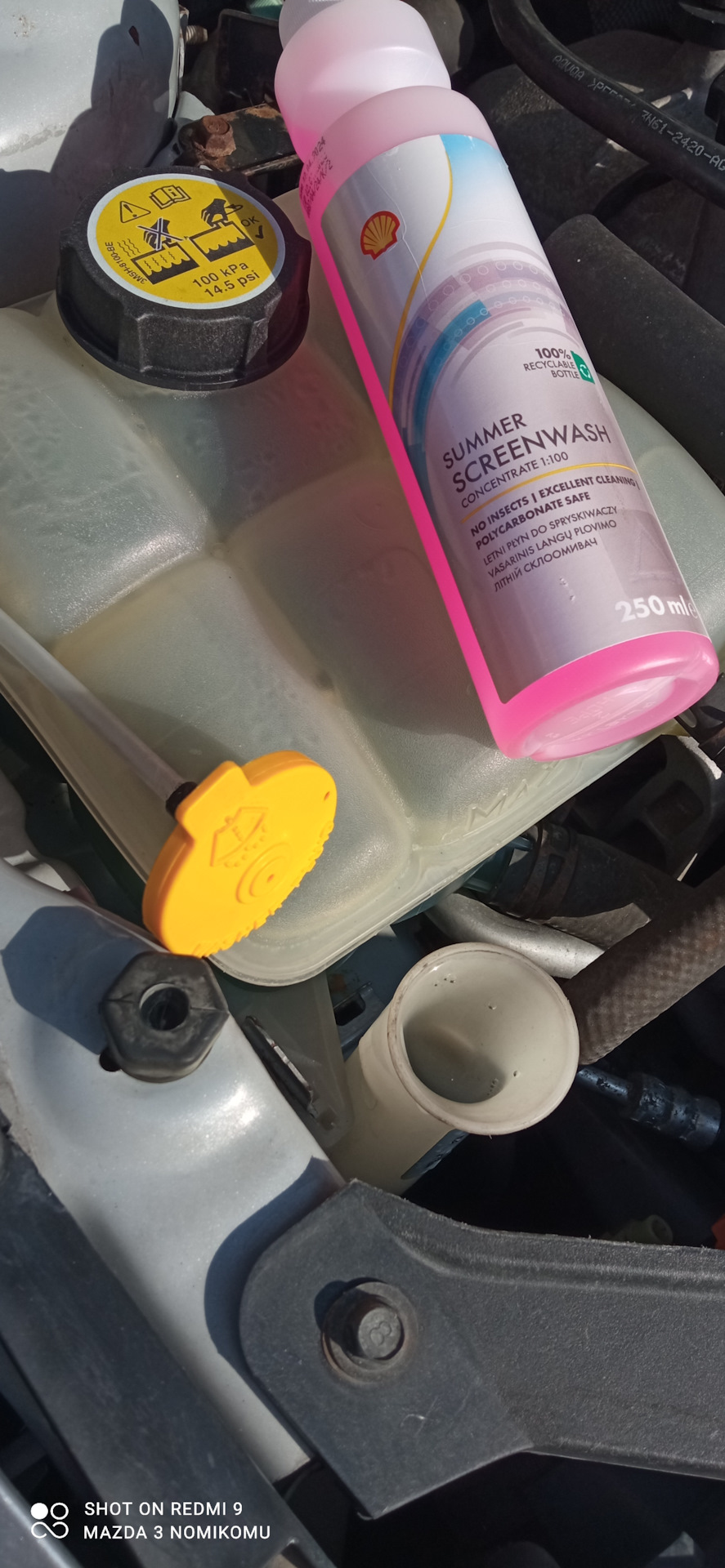 Наконец-то, можно заливать свежую омывайку (всегда заливаю дистилят+концентрат летней омывайки, ранее пробовал фирменную от BMW, Liqui Moly Scheiben-Reiniger с запахом яблока, сейчас решил попробовать Shell Summer Screenwash) и наслаждаться чистым ветровым стеклом))