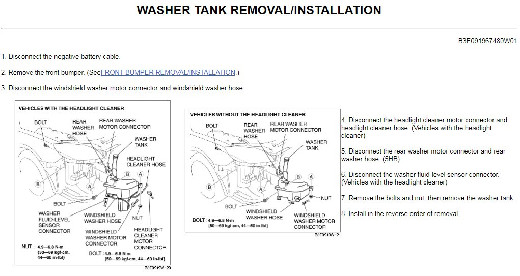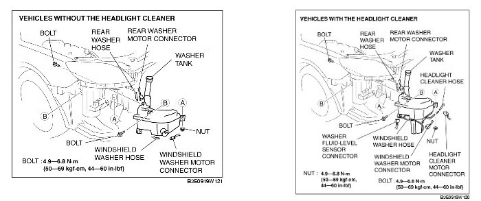 Есть два типа бачка — без омывателя фар (маленький) и с омывателем фар (большой). Второй идет с датчиком уровня омывающей жидкости (washer fluid-level sensor).