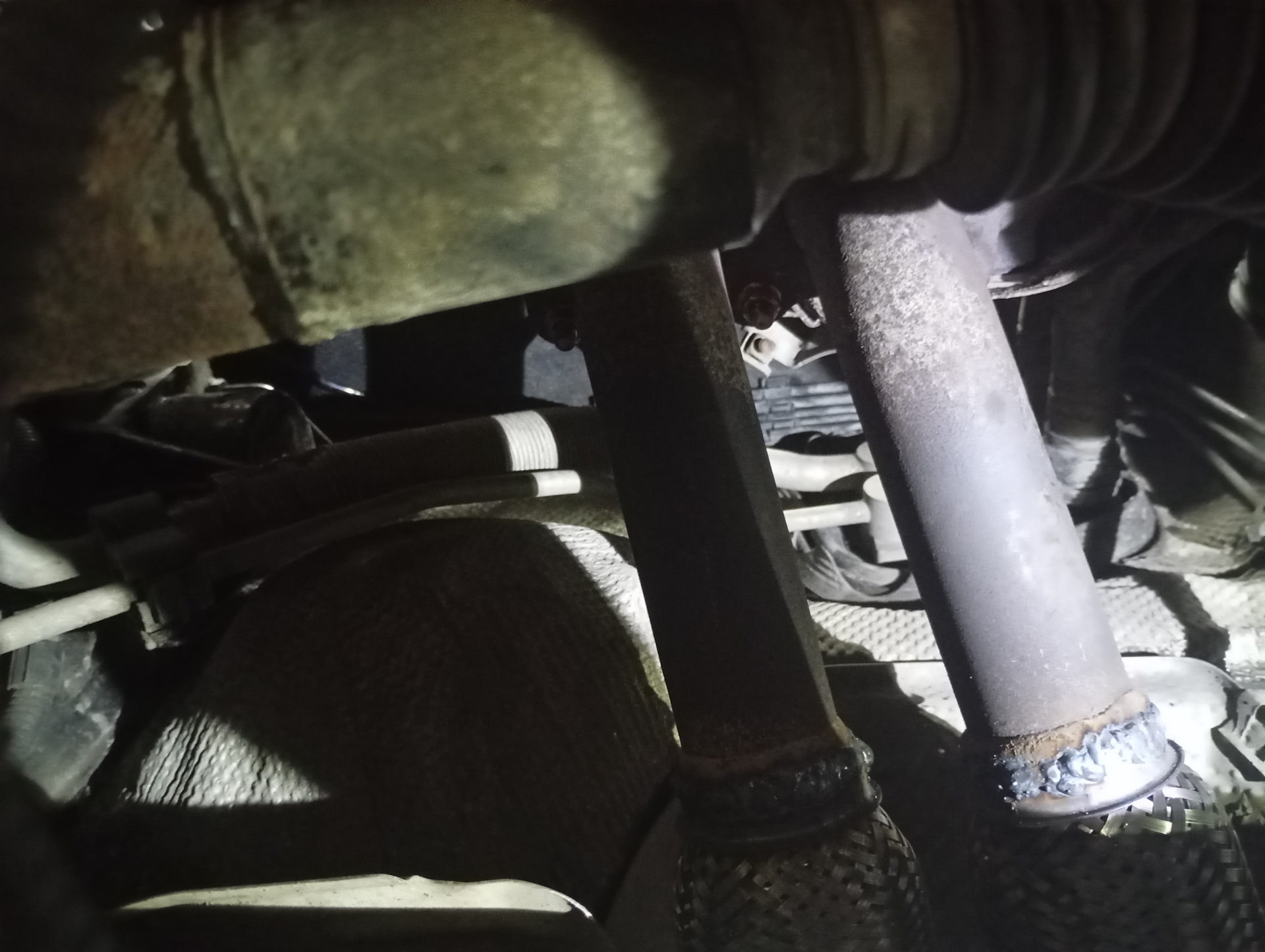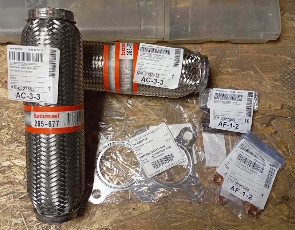 Заметил еще при покупке автомобиля, что секло по выхлопу с нарастанием эффекта во времени. К замене сподобился только сейчас, прикупил максимально лучшие гофры, оригинальную прокладку и гайки.