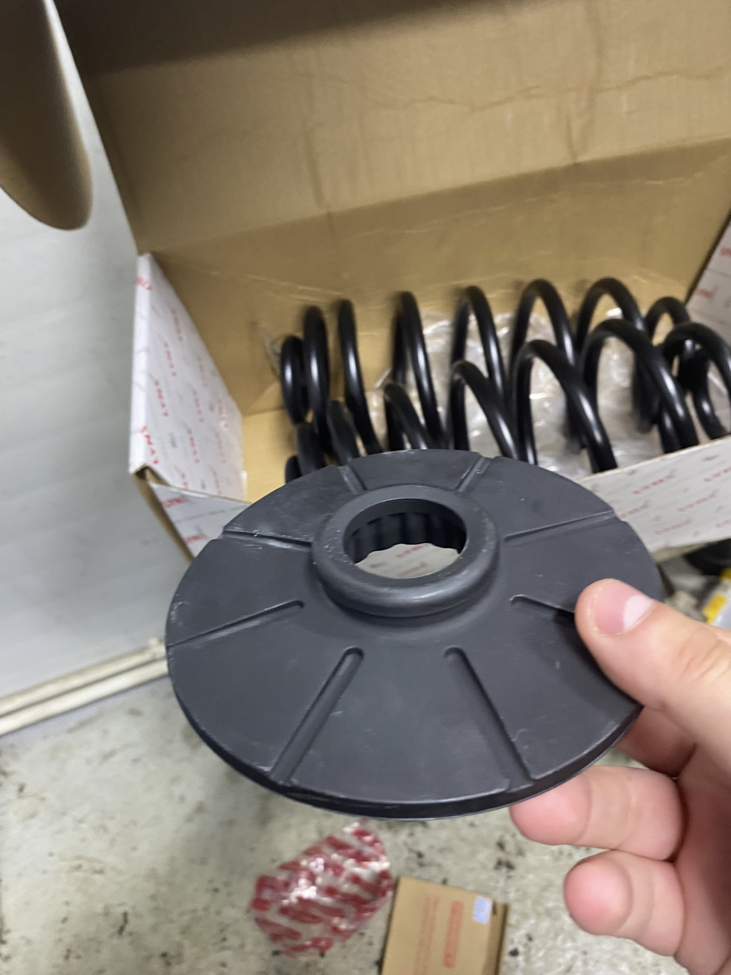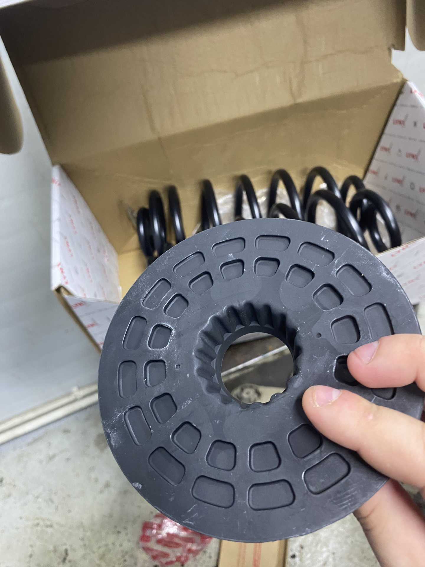 Есть один момент диаметр посадочных отверстий разный с каждой стороны, мы поставили широкой вниз, а узкой вверх и получается надпись на пружинах не идет вверх тормашками. На оригинальных же посадочные с обеих сторон одинаковые.