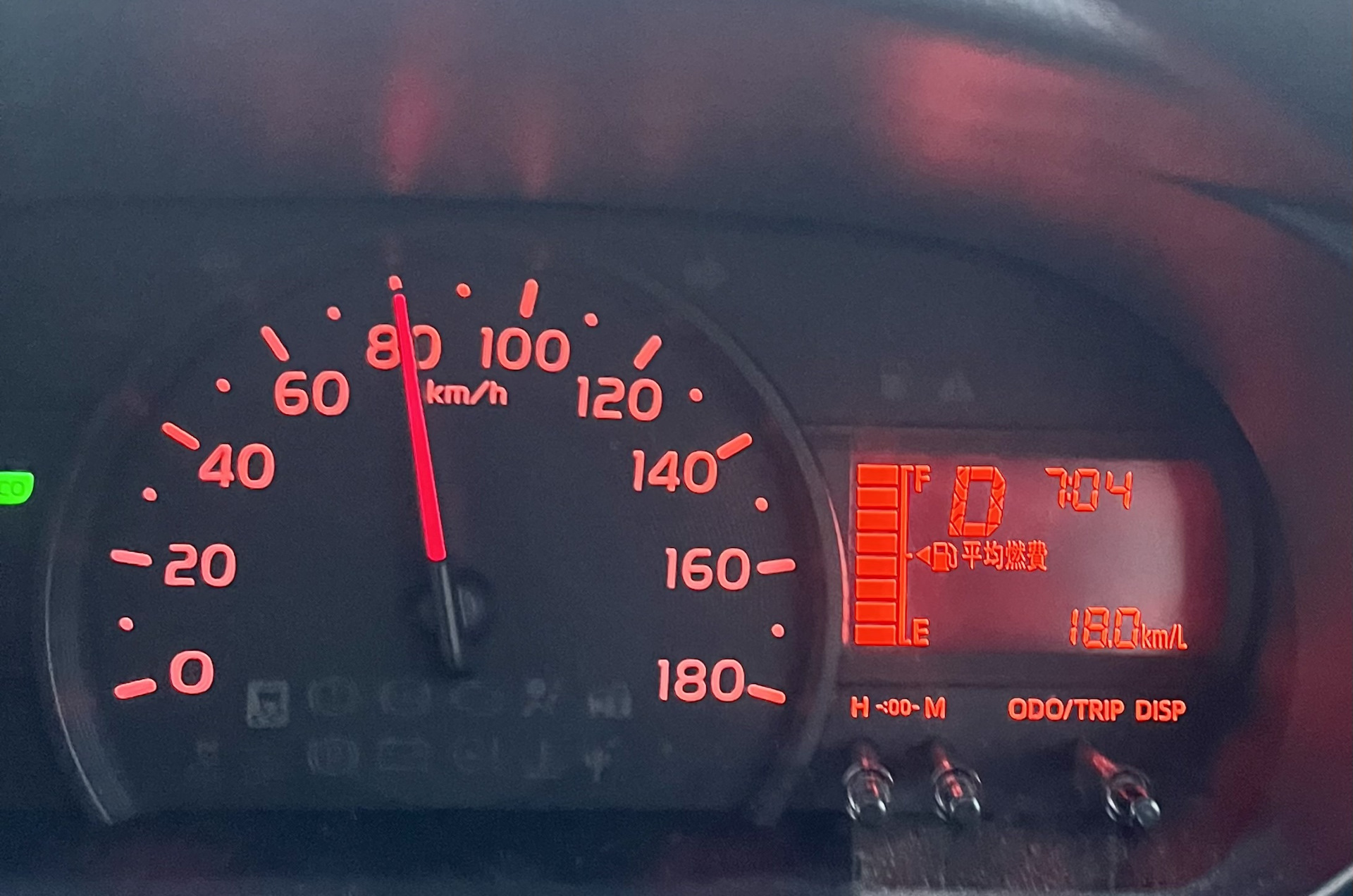 В пробке показывает 13,8 км/литр — 7,2 литра на сотню.