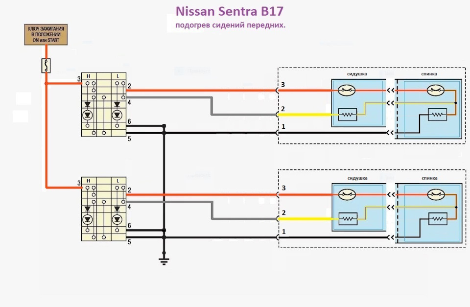 В режиме "Low" да, последовательно. По этому и нагрев элементов в сидении меньше!