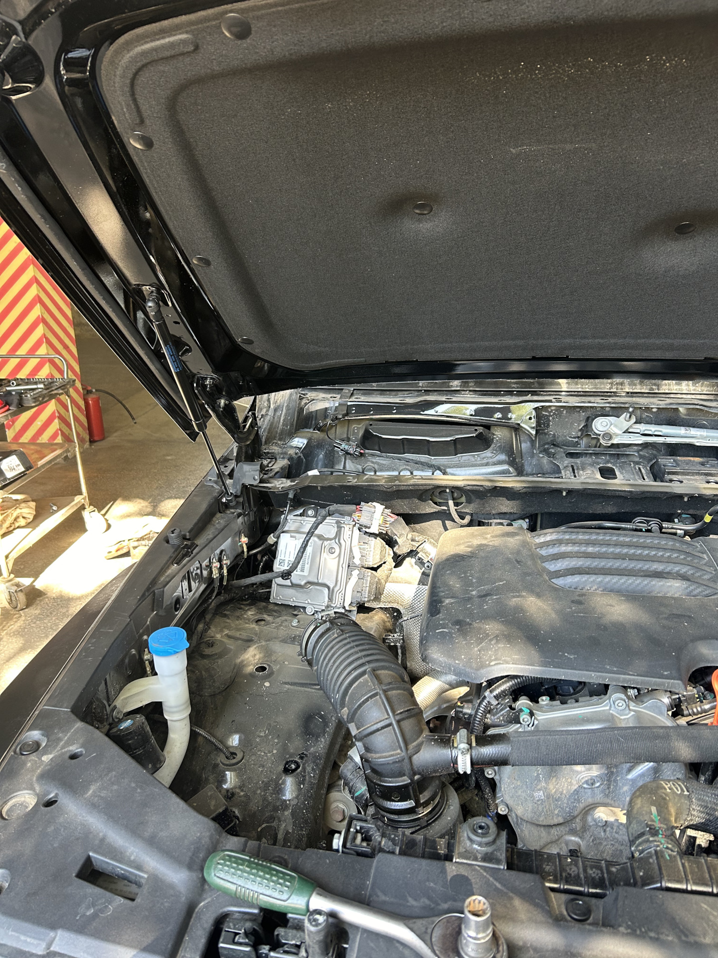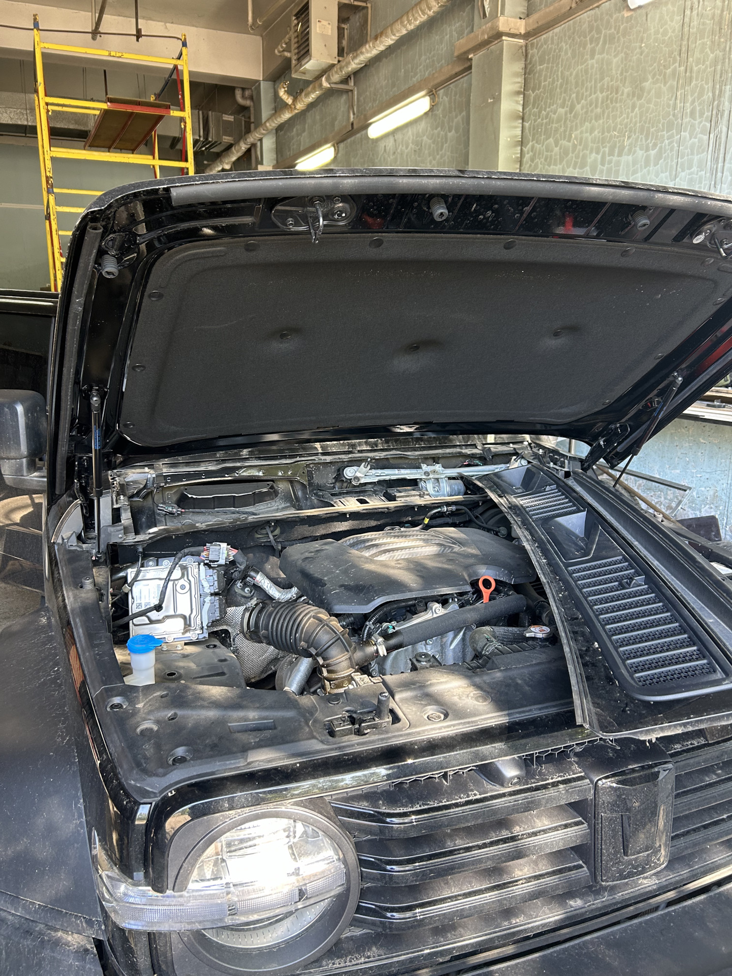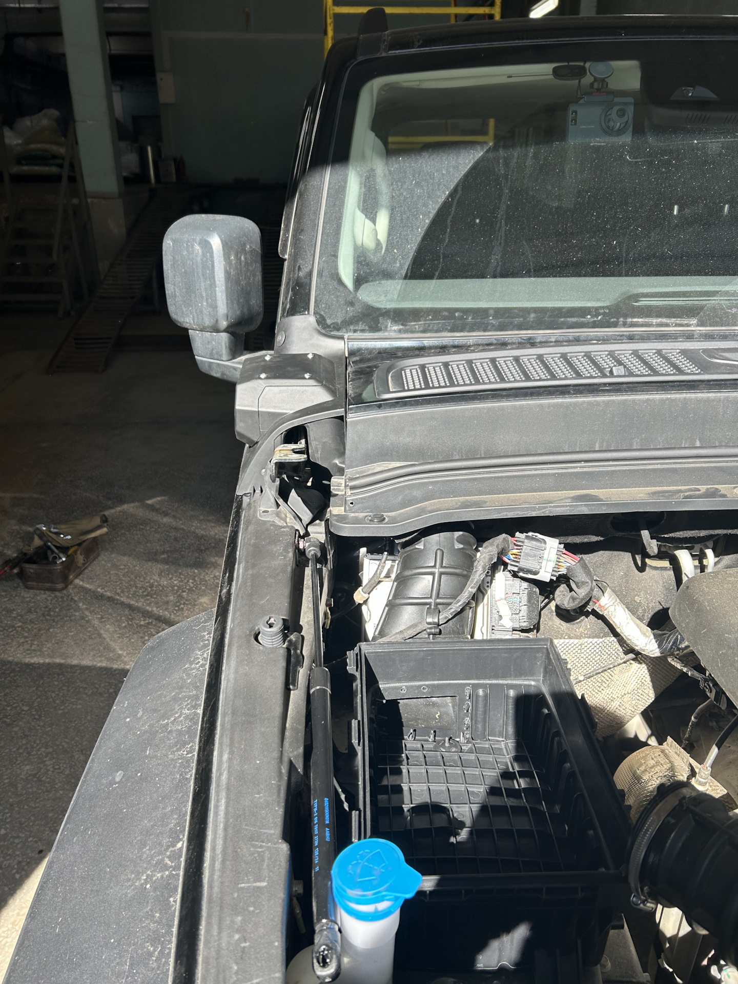 Тоже думали не снимать. Но, покрутив ту часть, что под жабо, сняв его предварительно, решили не заниматься любовью, а снять капот😄. 4 гайки и две пружинки на опорах. Дел на три минуты…