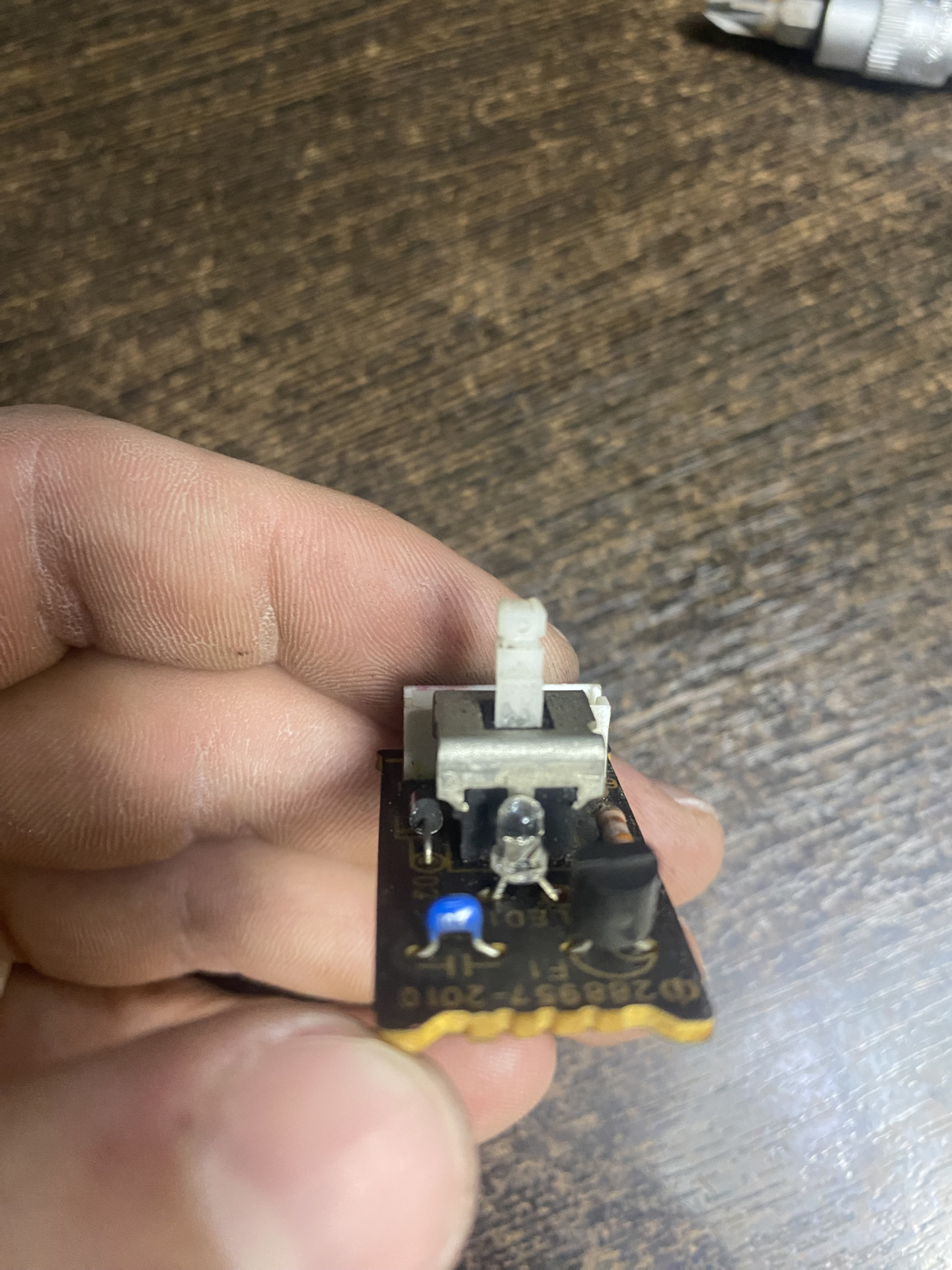 Далее меня как-то раздражал зеленая кнопка свинг и горит она как-то прям очень тускло, разобрал весь свинг до ее внутренностей и извлек плату с самим заводским диодом зеленого цвета, у меня есть много диодов оранжевых разных по толщине и подобрал оптимальный для замены, перепаиваю вместо зеленого, оранжевый.
