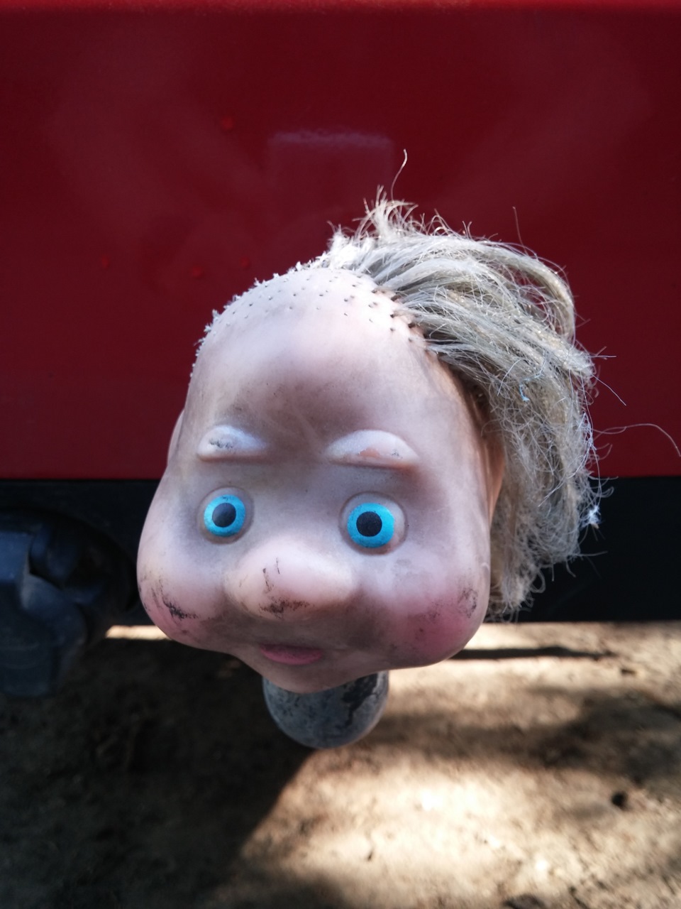 Всем привет Небольшая история нашёл я как то голову куклы на дороге грязная страшная дай думаю ради хохмы присандалю себе на фаркоп, мыл машину щёткой за одно и его отодраил ездил с ним неделю думал написать что появился домовёнок, но выхожу я в одно прекрасное утро а его нет …уки слямзили Кузю я аж растроился день на смарку:(забыл уже про него через недели три опаздывая в очередной раз на работы вылетаю с подъезда щимлюсь к своей ласточке смотрю висит я аж оКуел с приходу :))) вернулся гад :)))) счастья полные штаны! ну а теперь о приобретениях ранее писал что пришла лазерная указка с поднебесной вот был свободный часик я её и вмонтулил, фото прилагаю !