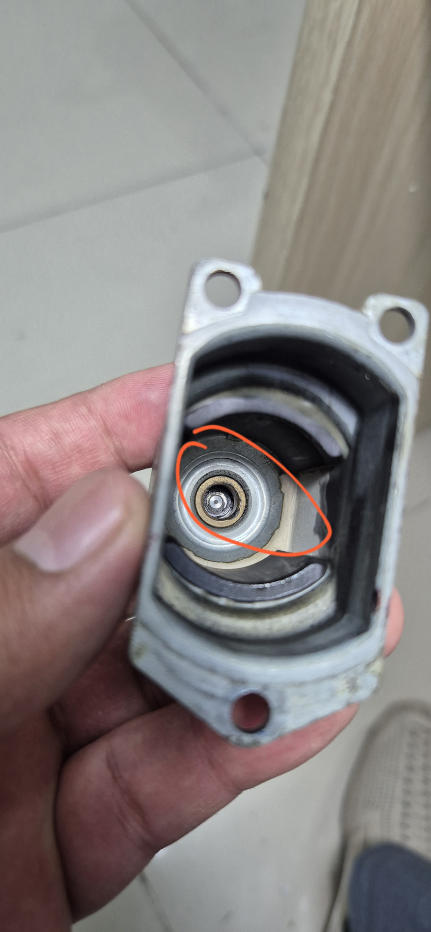 Задача-все потроха с нашего механизма, перенести в новый. Снимаем крышку-статор моторчика (3 винтика), вытаскиваем ротор. Наш ротор на водительской двери с чёрным колечком (графитовое). Ротор в водительском стеклоподъёмнике должен быть с этим кольцом, иначе корректно работать не будет!