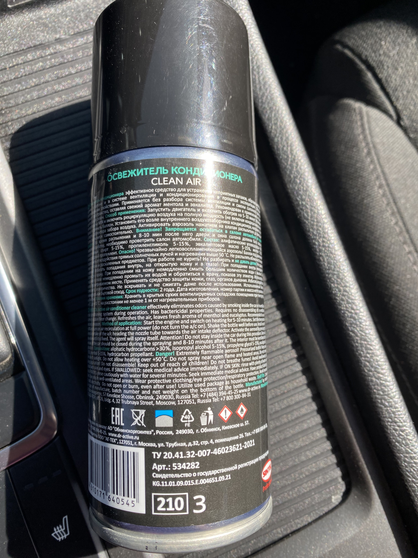 Освежил и вроде как «очистил» систему вентиляции. Использовал шашку Dr. Active. О результатах пока ничего сказать не могу т.к. после использования не ездил на машине. Запах ментола, в перемешку не пойми с чем, в машине очень сильный. После использования проветривал, но недолго, т.к. началась, как назло, пыльная буря. Все делал по инструкции.Машину закрыл и оставил.