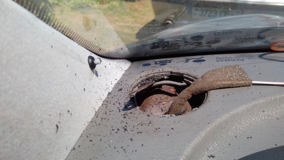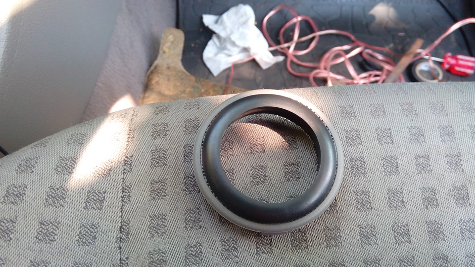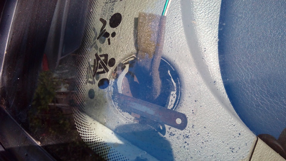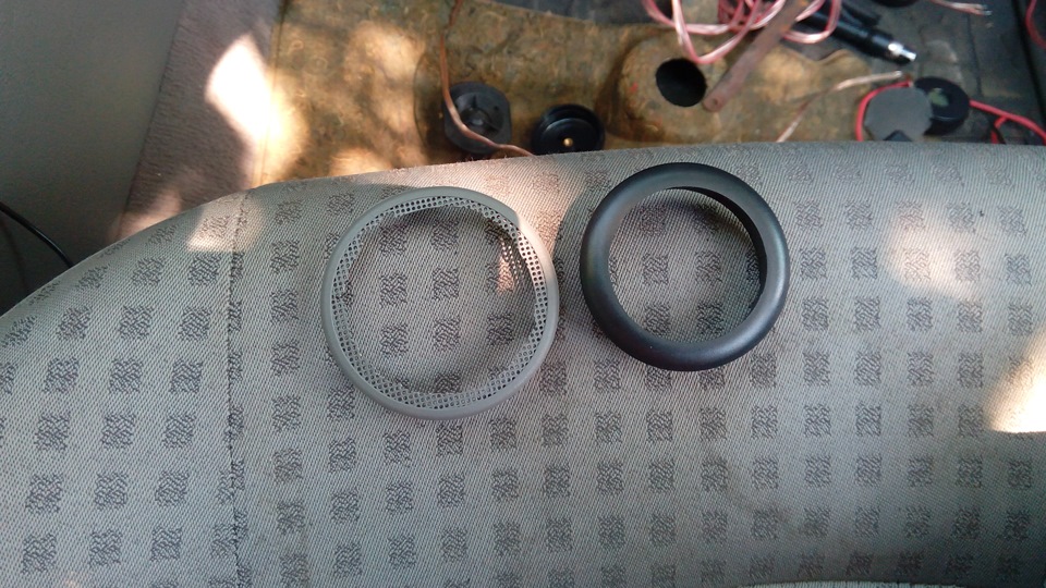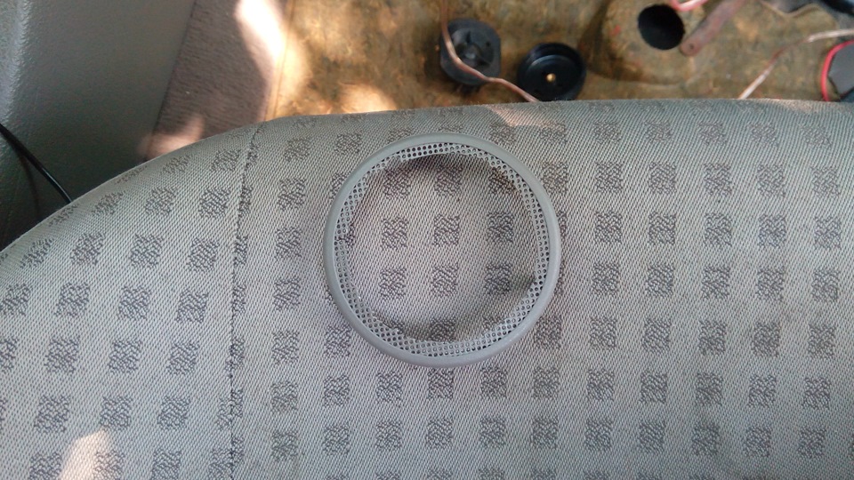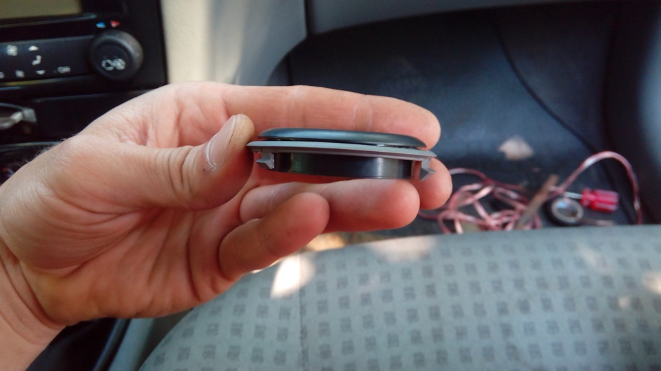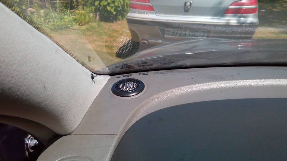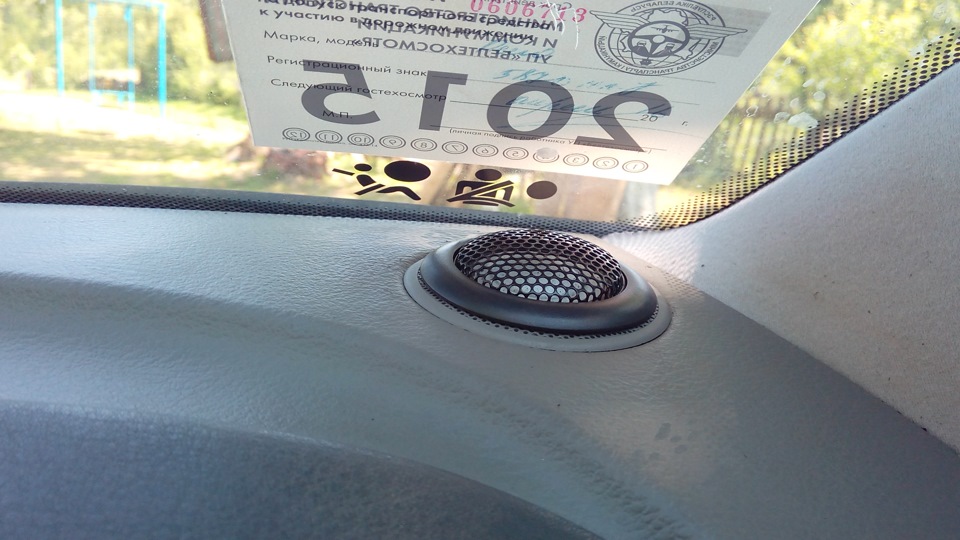Пять минут и все подходит))) Но верхняя часть твитера не очень красиво смотрится в "гнезде" где крепится штатная сеточка. Решил вырезать отверстие в сеточке и через нее вставить твитер
