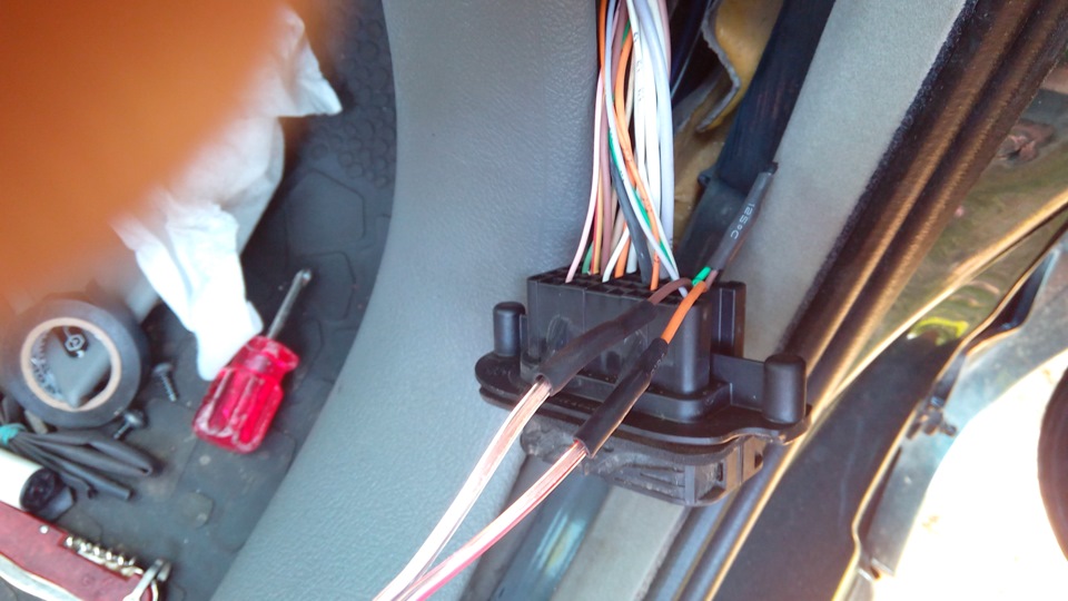 Провод на передние динамики от магнитолы идет один (на каждый динамик — пара), а в разъеме ответвляется на твитеры
