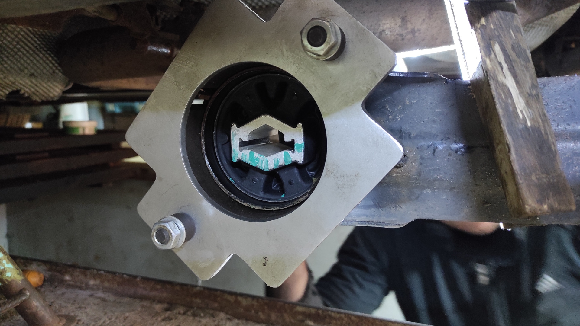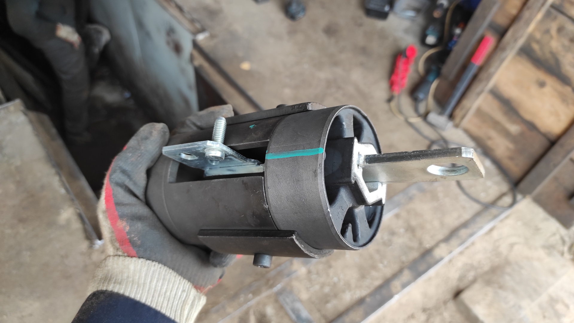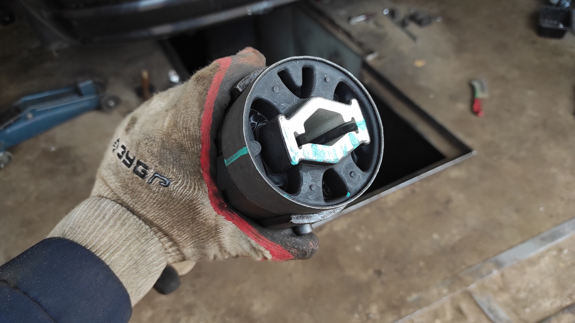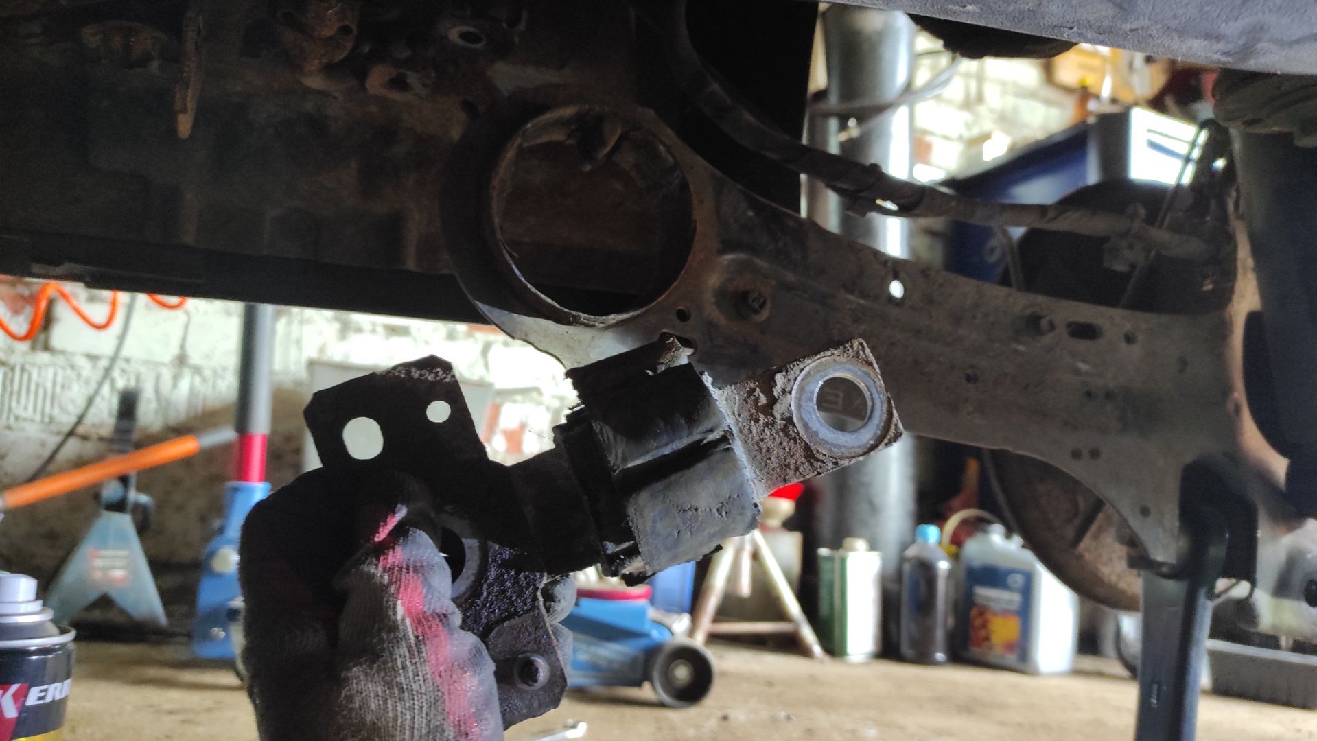 Далее переходим к левому сайлентблоку, предварительно перед установкой достали из него крепёжную пластину.