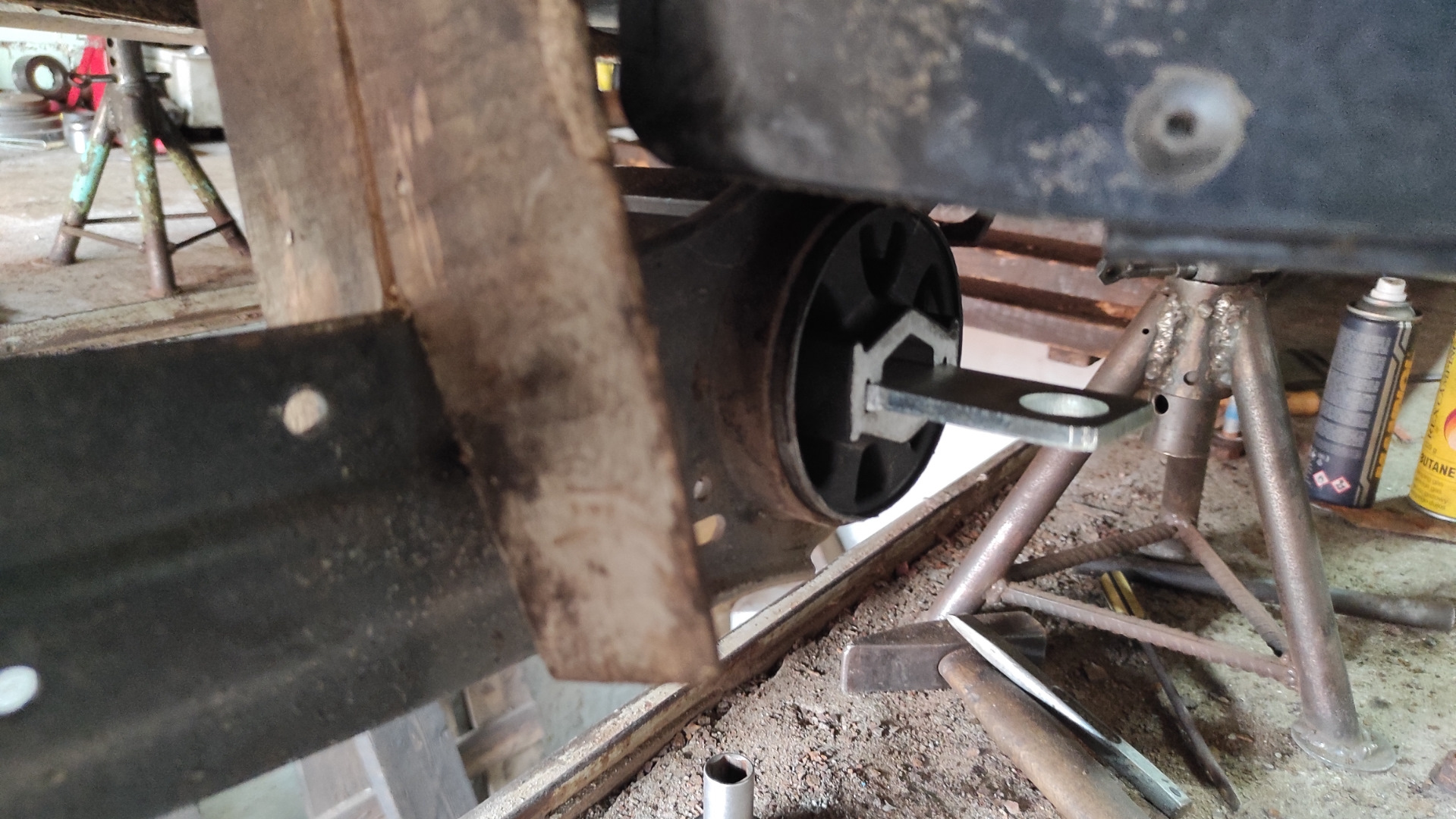 После поставили крепёжную пластину на место. Нагрузили подвеску при помощи домкратов и затянули все рычаги.🔧