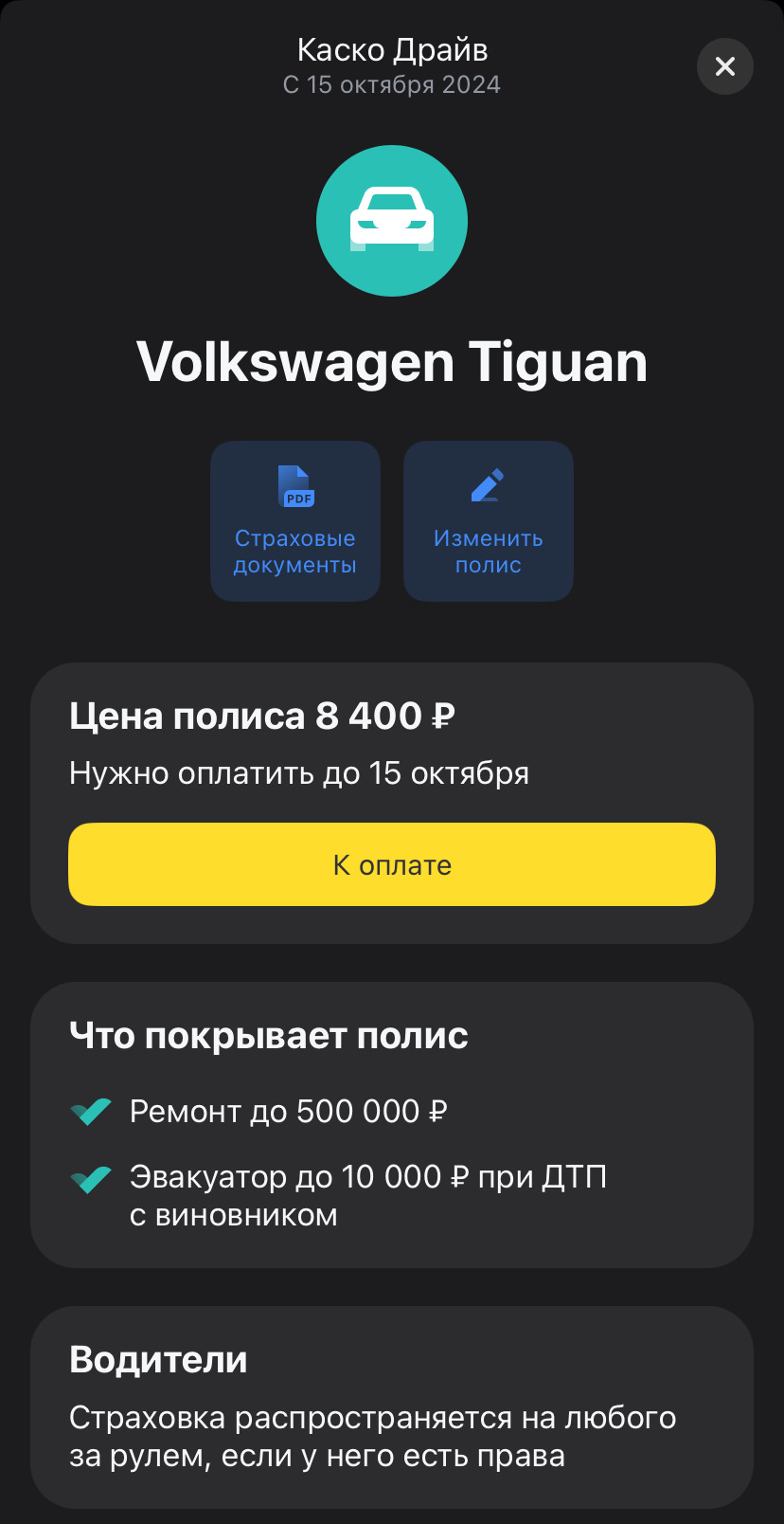 Тинек он такой тинек блин. У меня в том году осаго стоили 7800(кбм подняли после ДТП с 0,46 до 0,78), миниКаско 14т₽. В этом году, кбм упал до 0,74, значит и полис должен быть дешевле. По итогу, на миникаско скидка в 4 рубля, а вот осаго 9600. На вопрос почему, техсапп ответил: Ну мы же решение по фоткам принимаем и за 30 минут. 🤷♂️ Причем в альфе осаго выходило 5400, а миникаско 14250, короче то же на то же. Остался в Тиньке