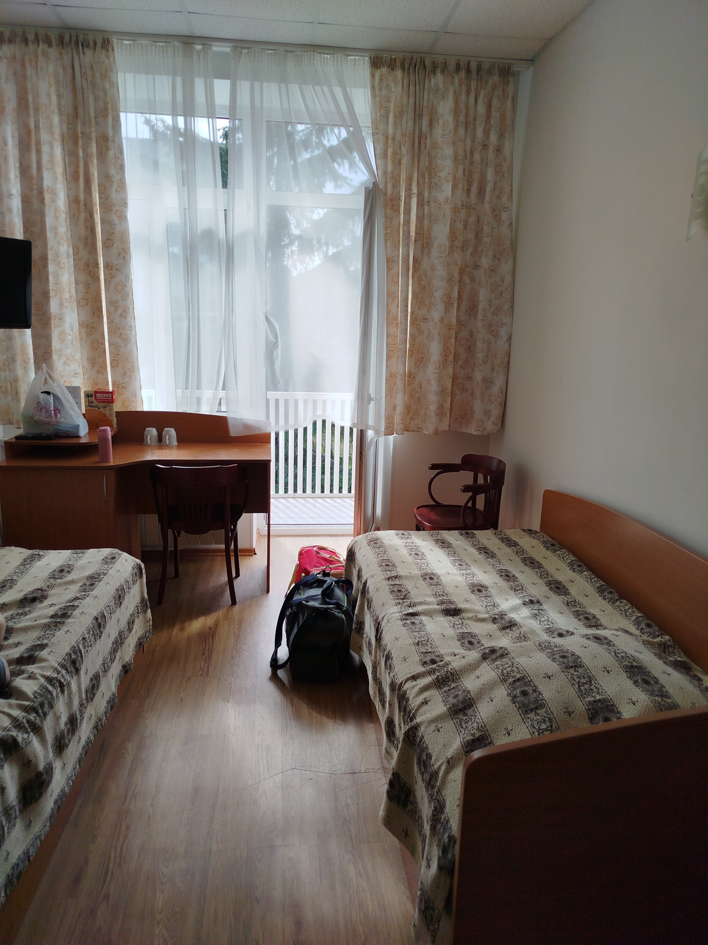 Впрочем, мы отвлеклись. Разглядывая фото гостиницы я обратил внимание на то, что она представляет собой типовой проект санатория-профилактория, распространенный по всей стране. У нас в городе таких 2 здания, например. Я ходил в такой, работая на "Звездочке", а цена за номер оказалась довольно низкой.