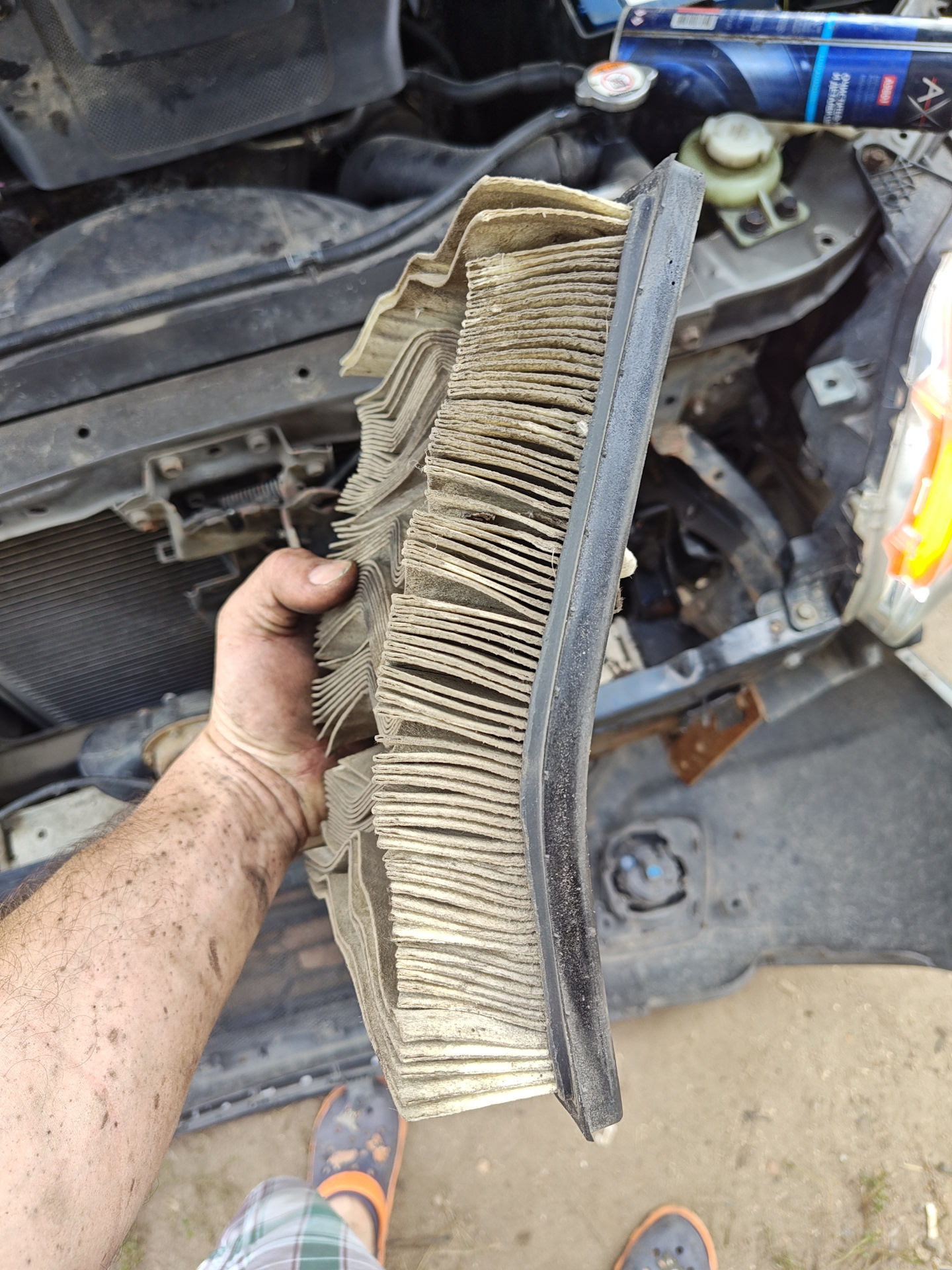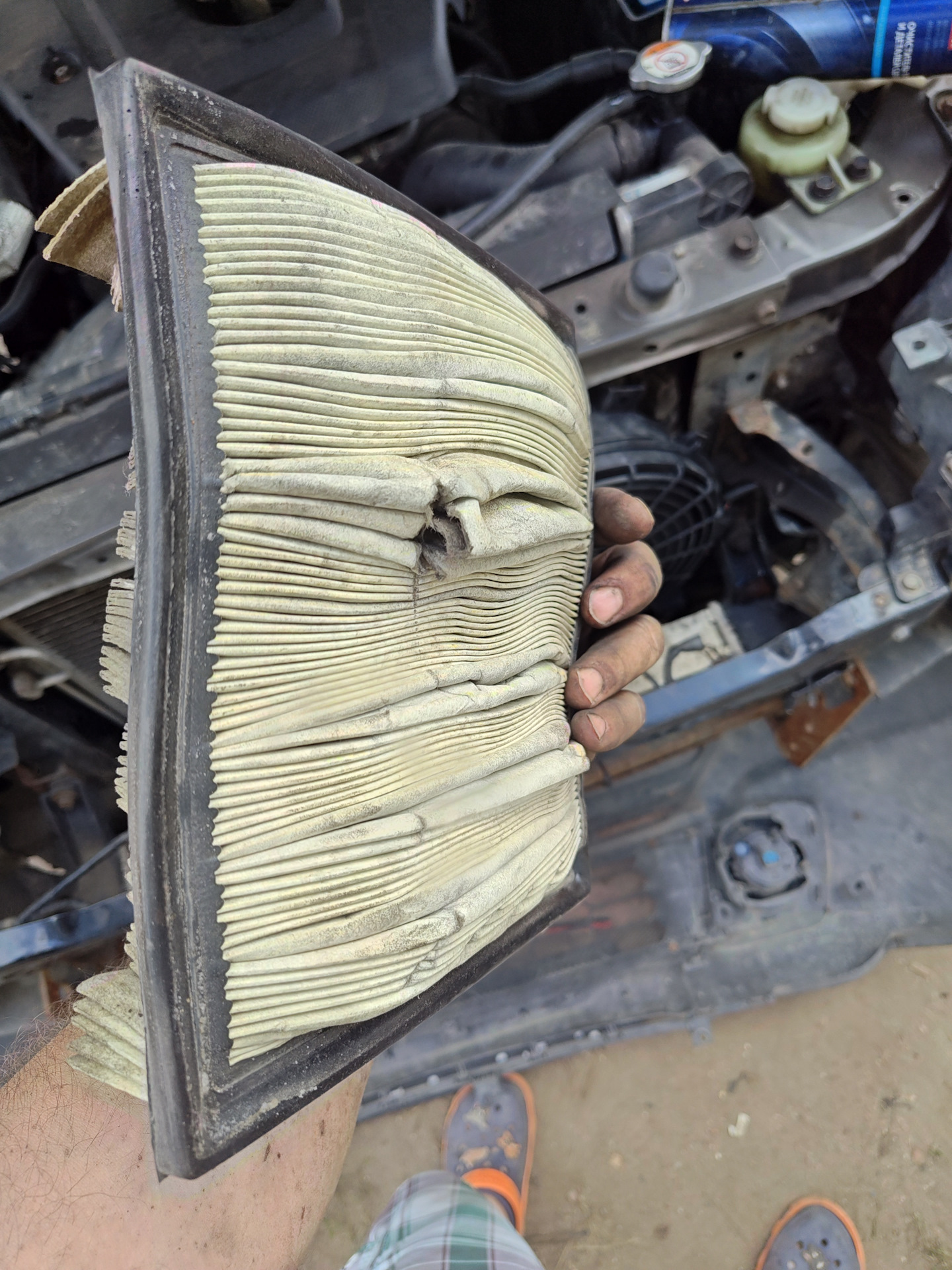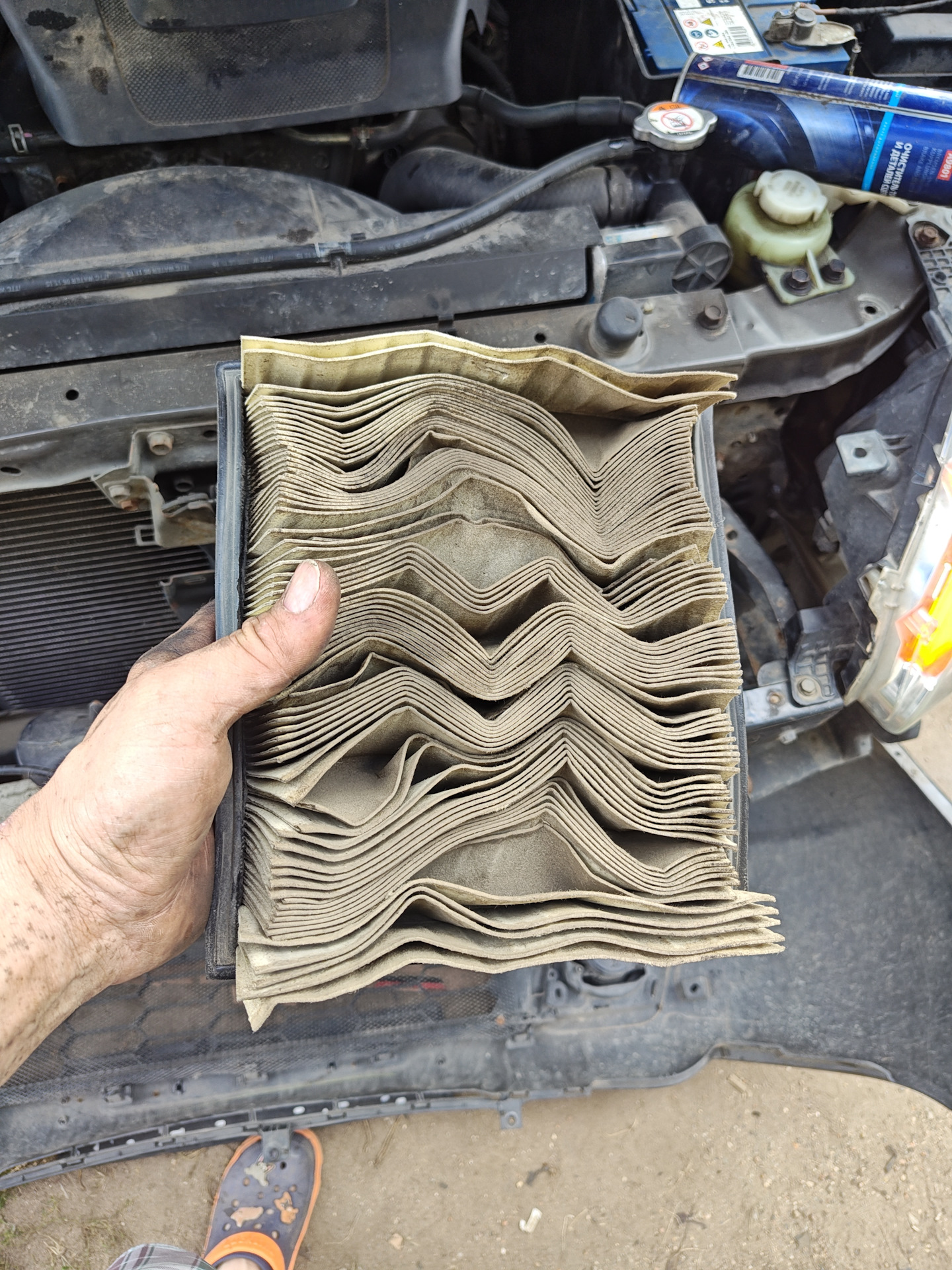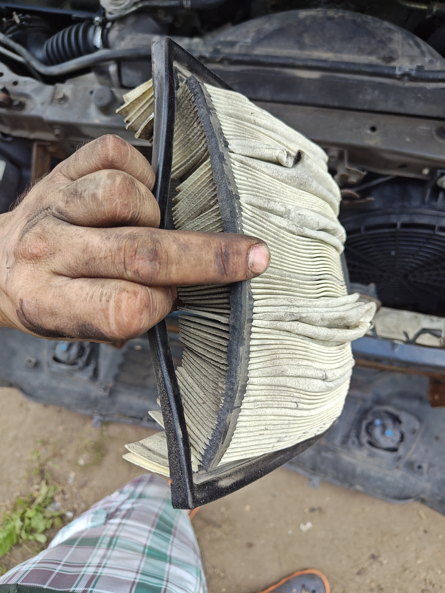 Плюсом при осмотре всех узлов был выявлен разорванный в хлам воздушный фильтр. Причём менял я его три тысячи назад.
