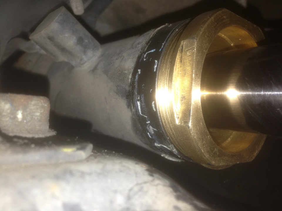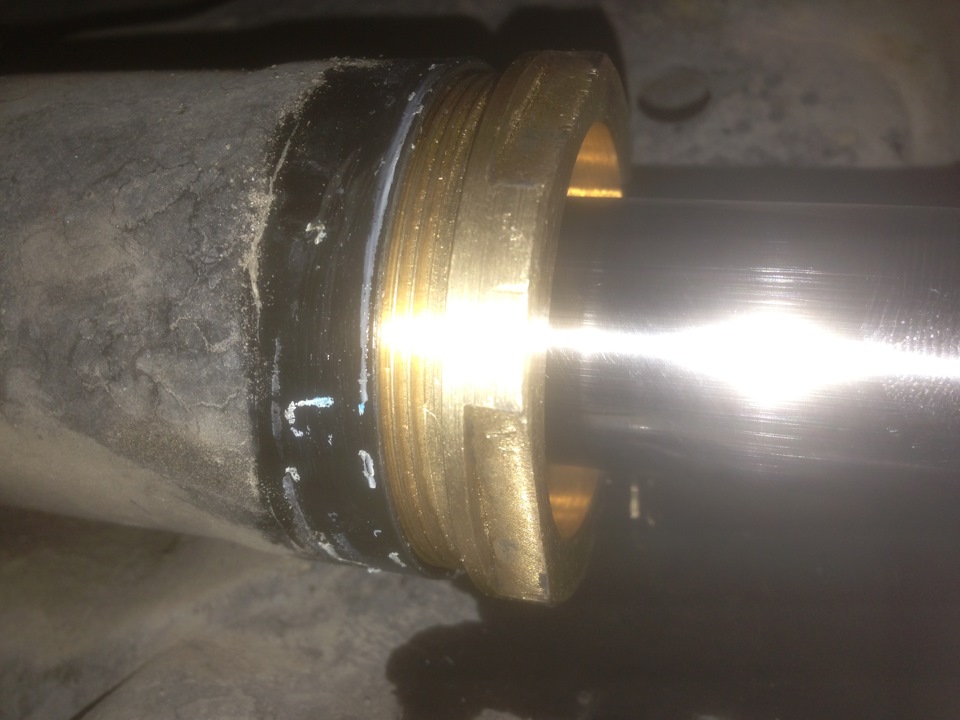выкрутив втулку, принялись штангенциркулем находить различия… вначале обнаружили различия в диаметре нижней части, где сальник, на родной втулке был диаметр 46 мм, а на той, что вытачивал токарь было 47 мм, но т.к. рейка имеет одинаковый диаметр, пришли к выводу, что это не влияет на то, что втулка не заходит в рейку до упора