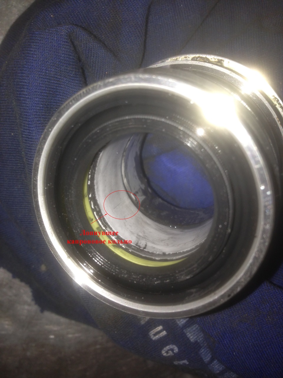 трескающееся из капрона, а в новой втулке из капролона. оно прикасается к валу, и не даёт прикасаться к металлу, а когда капрон лопается, то вал стучит о металл втулки.