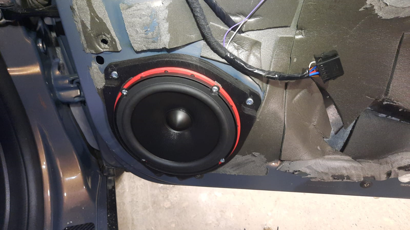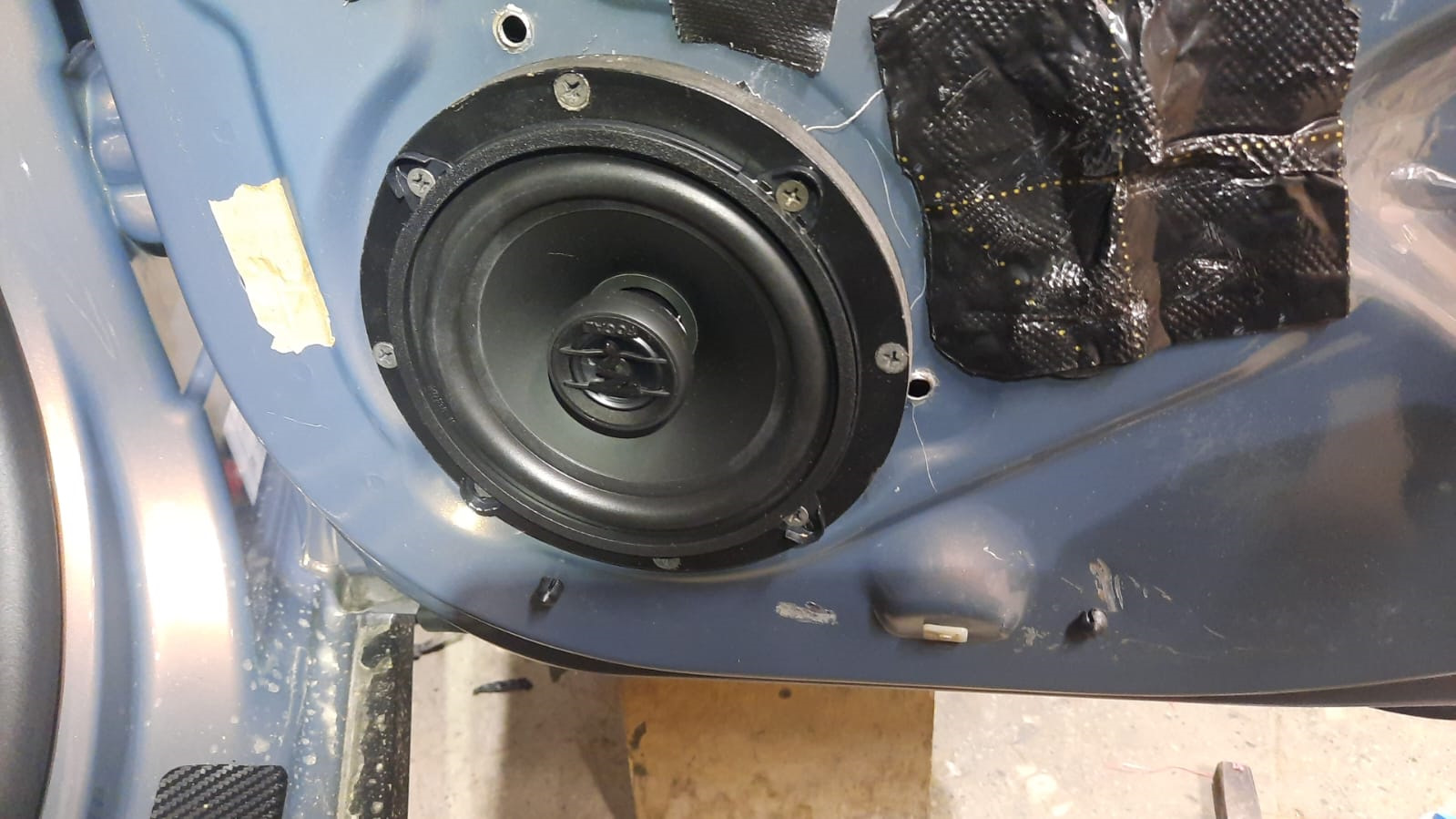Вибра наклеена на метал дверей… Сплэн поверх и внутри на обшиве дверей.