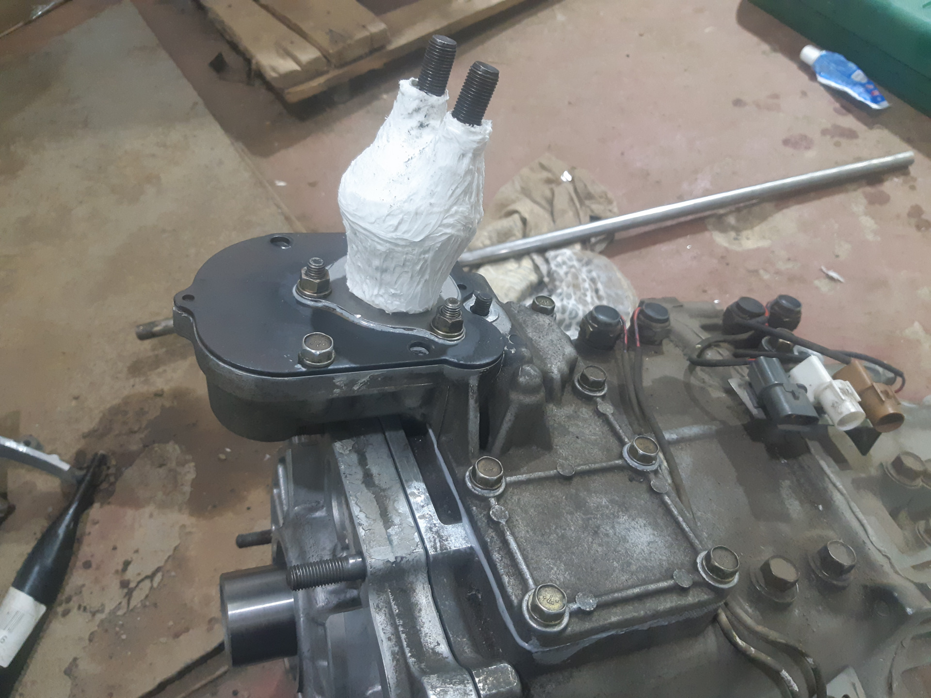 Раздатку установил на машину, но так как раздатка от делики, и я не учел, что само крепление рычагов у делики стоит выше чем у паджеры, то механизм зашел в салон…