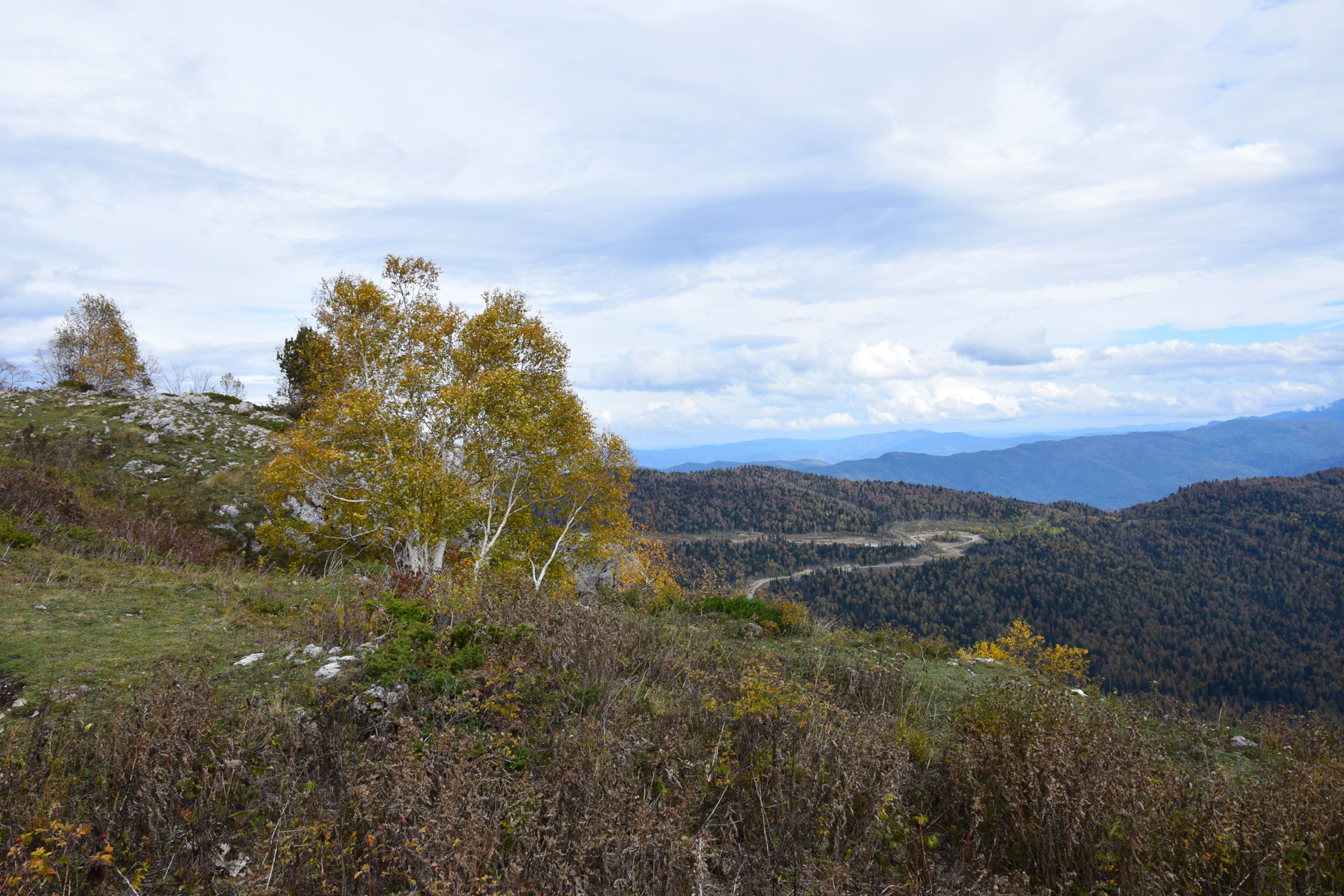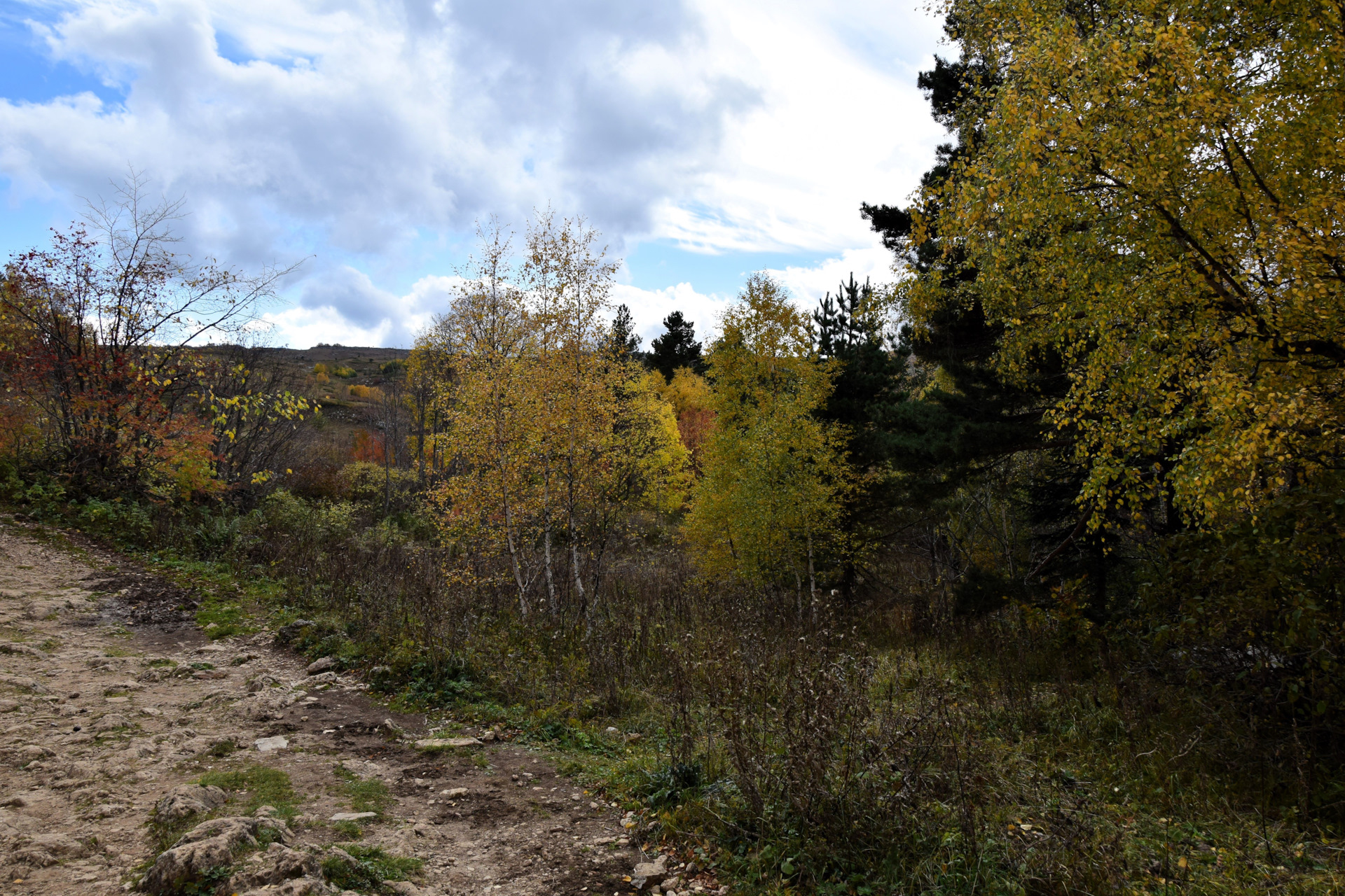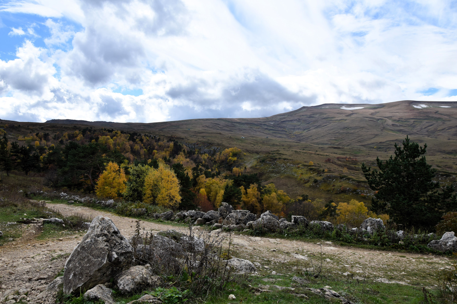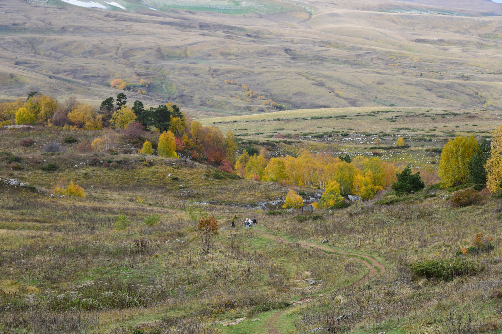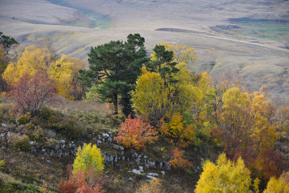 Двинулись вверх к плато Лаго-Наки, доехали в самый конец, а тут прям осень осень уже