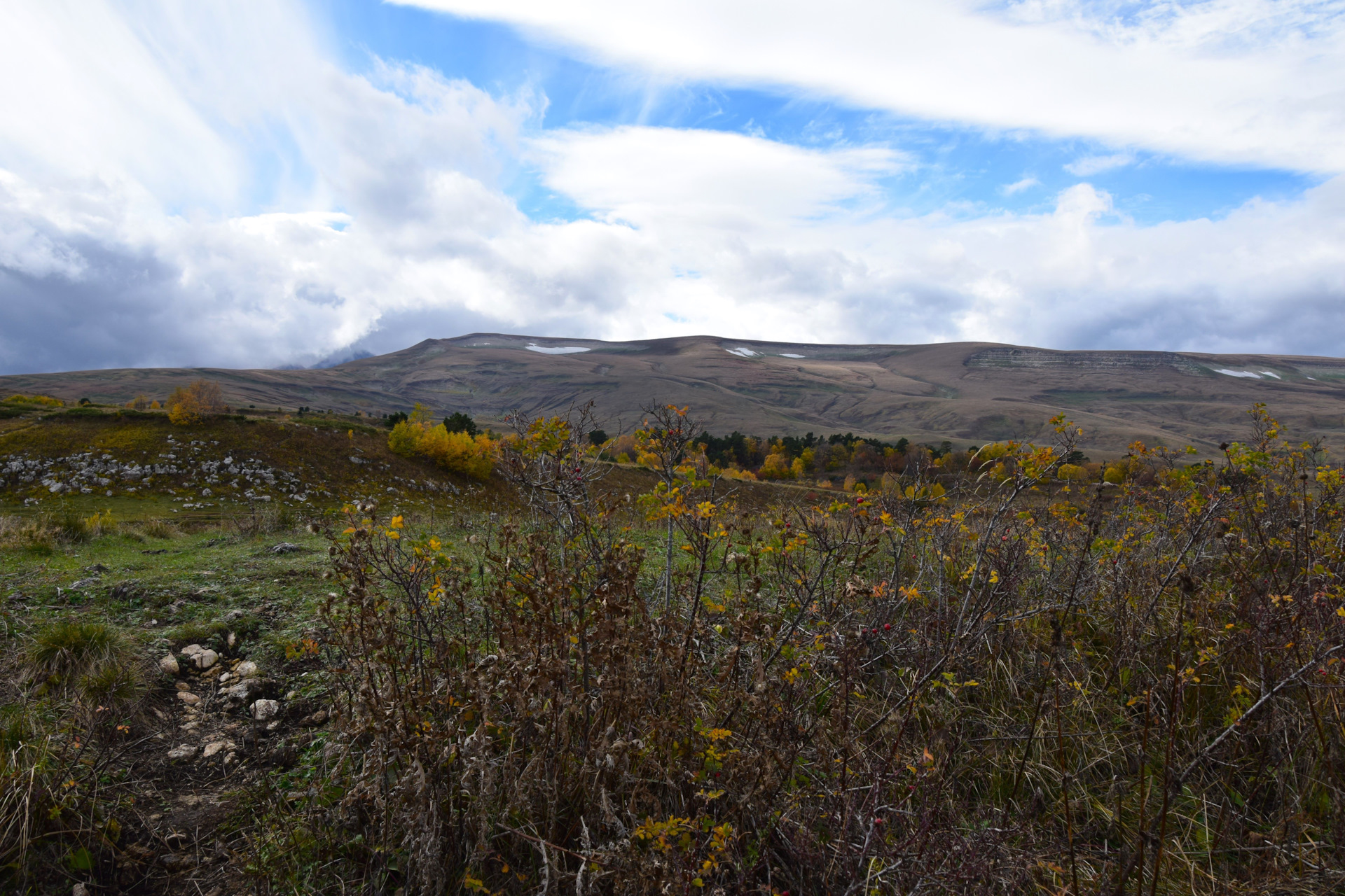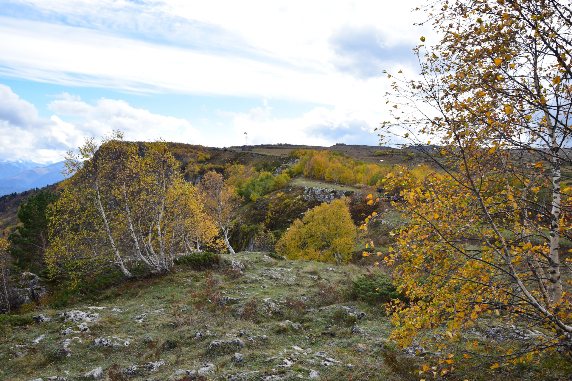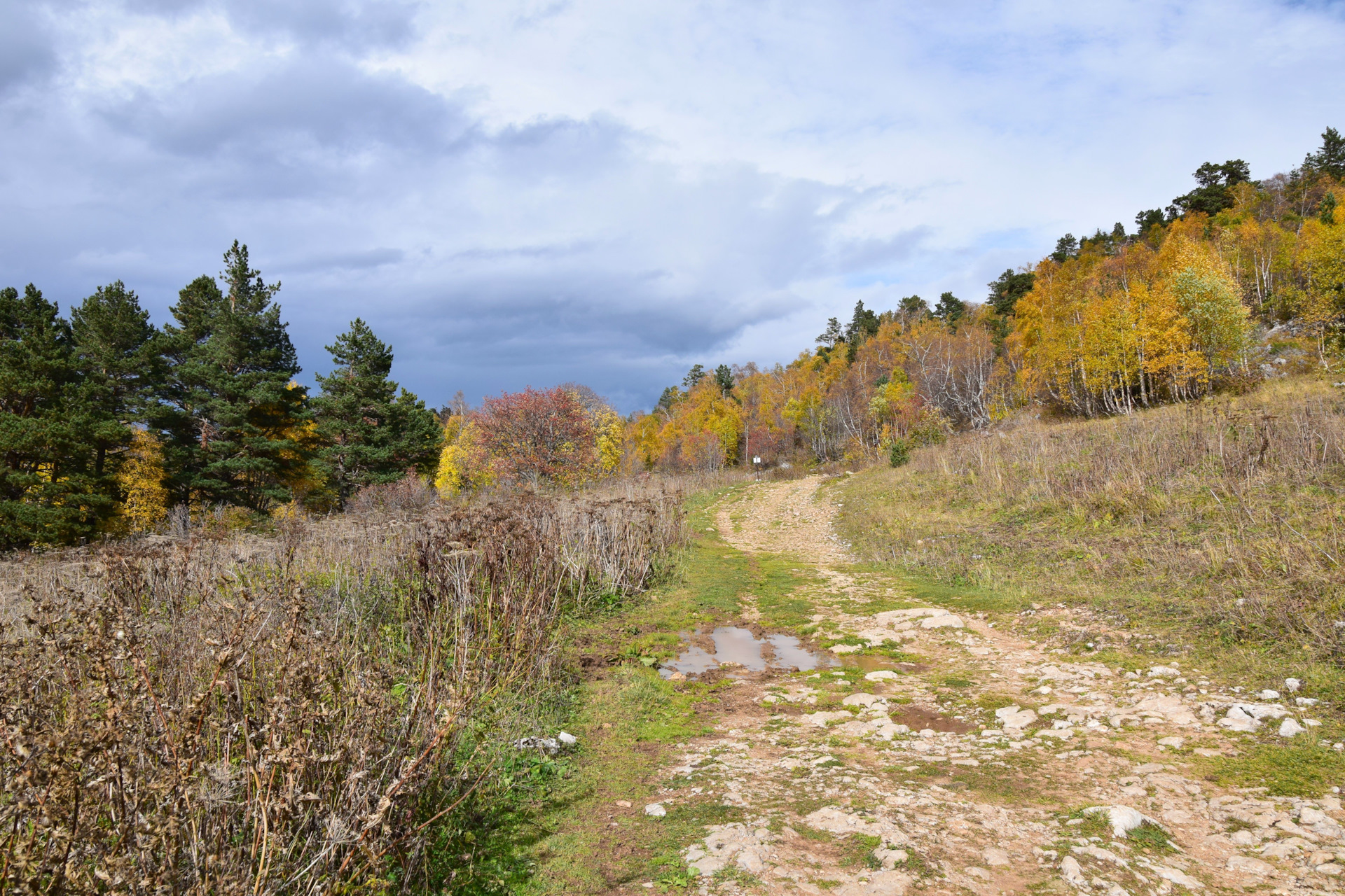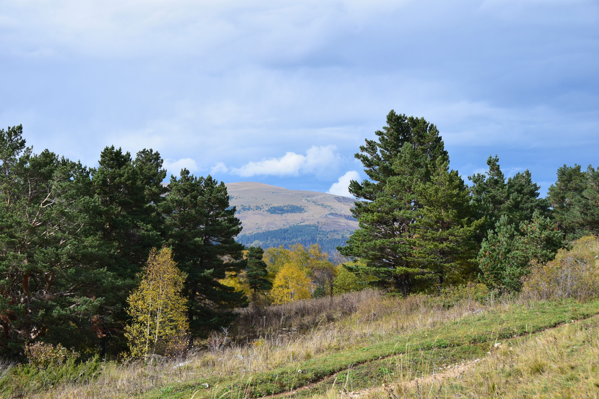 Двинулись вверх к плато Лаго-Наки, доехали в самый конец, а тут прям осень осень уже
