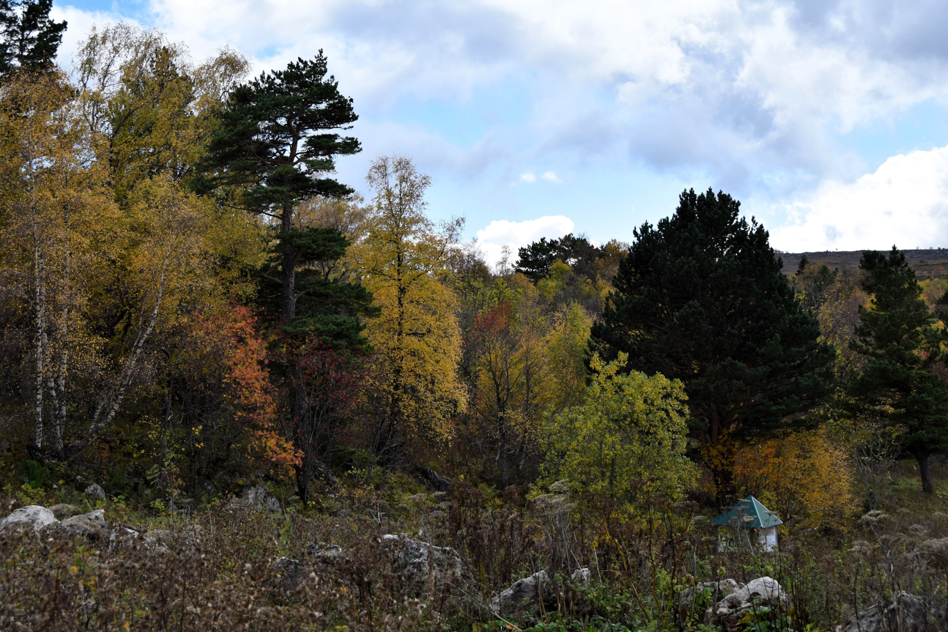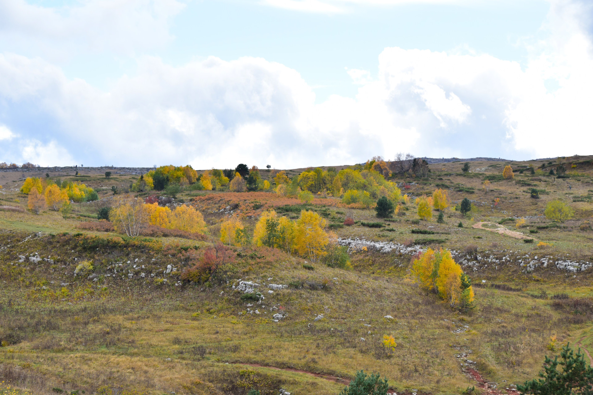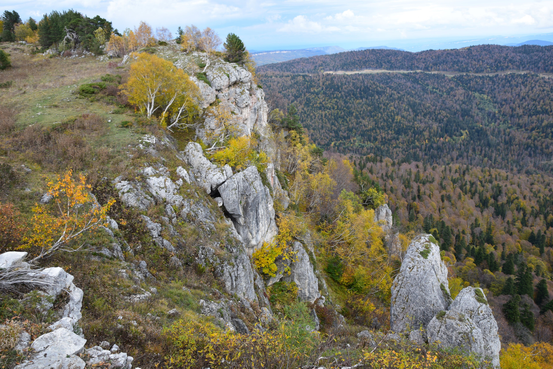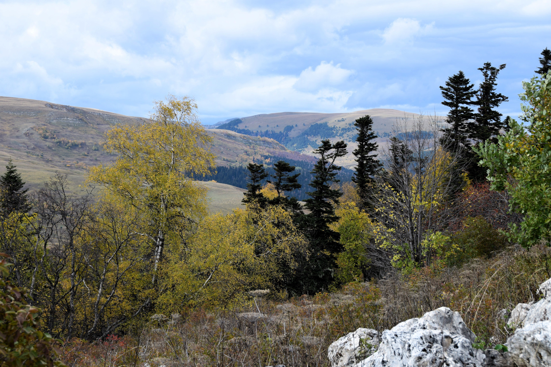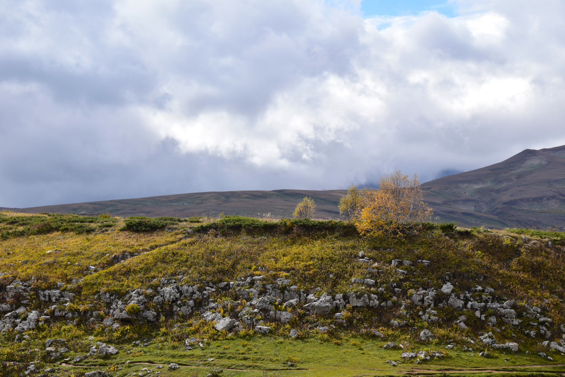 Двинулись вверх к плато Лаго-Наки, доехали в самый конец, а тут прям осень осень уже
