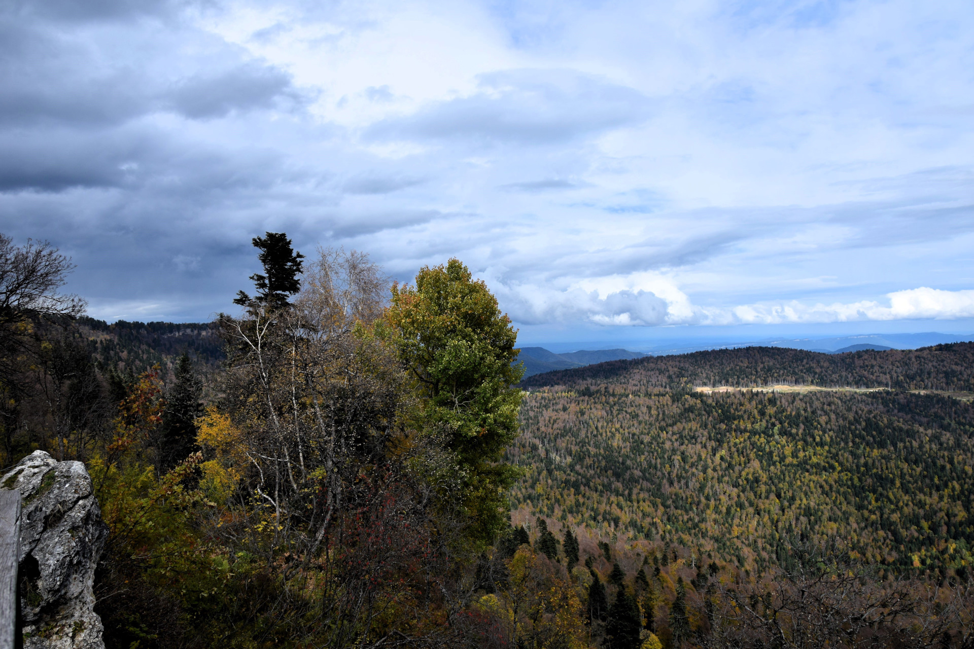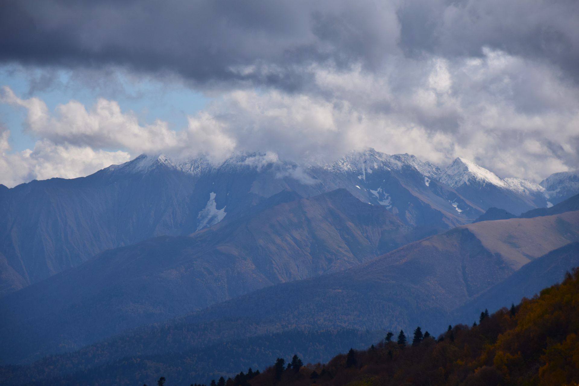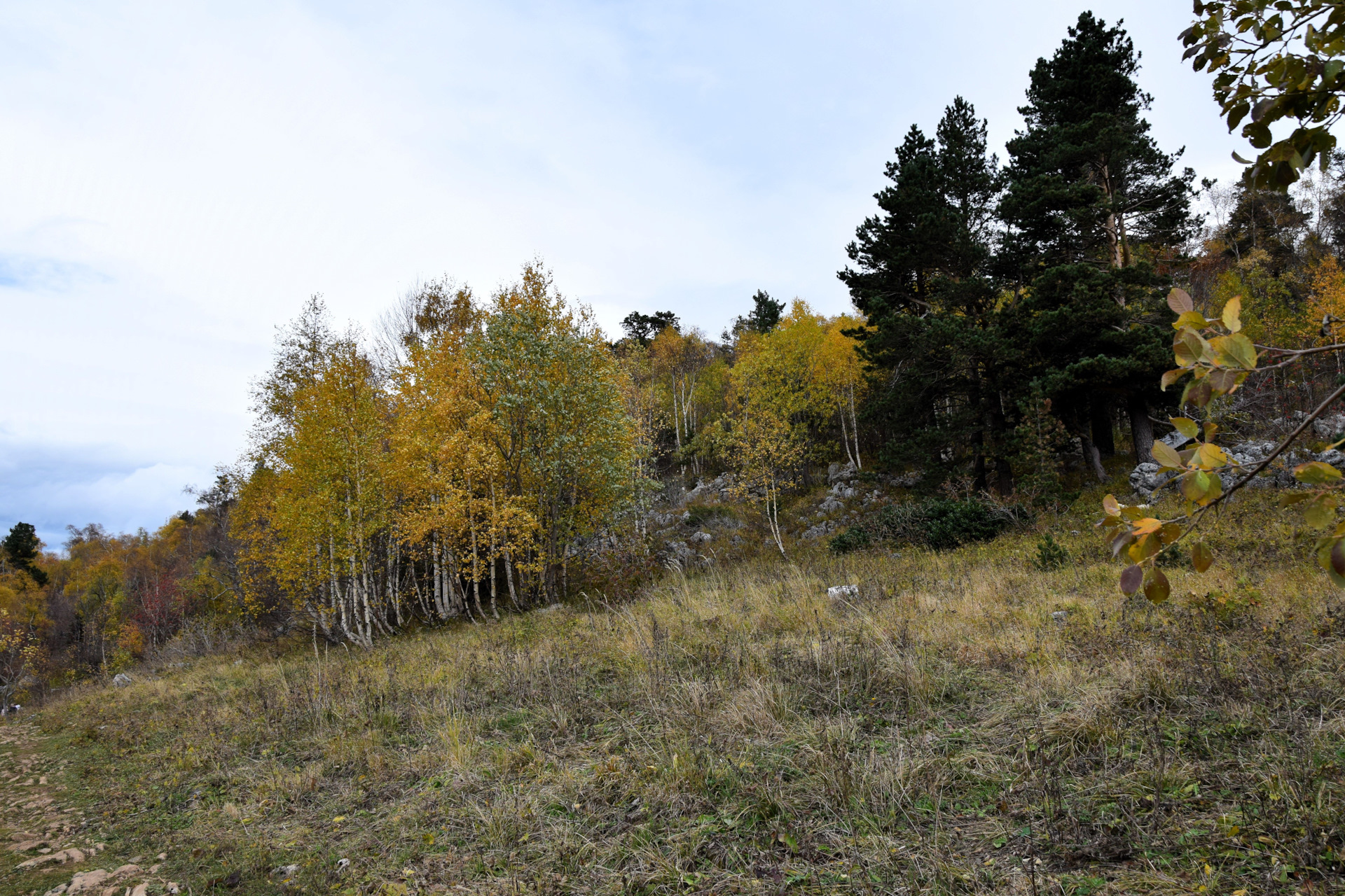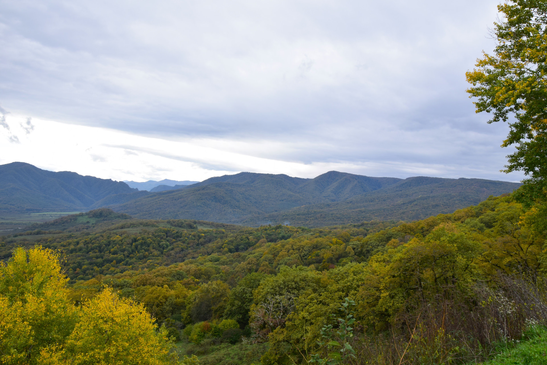 Двинулись вверх к плато Лаго-Наки, доехали в самый конец, а тут прям осень осень уже