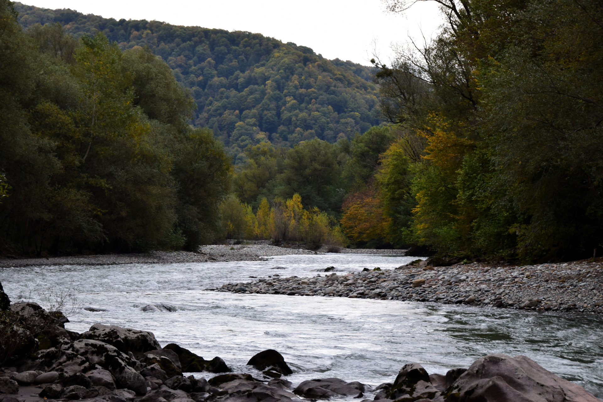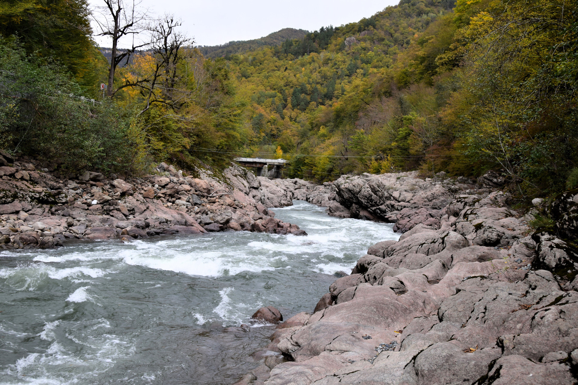 А домой хотелось, как серпом по клубням ) доехали вниз до развилки и повернули в сторону Гузерипля, захотелось напоследок постоять у горной реки, есть там места ещё.