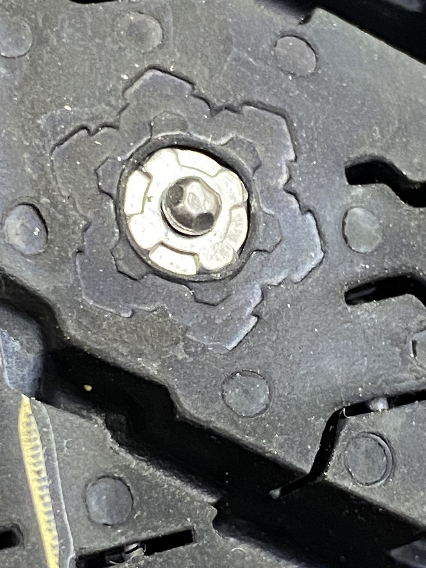 1. SPIKE-COR TRI — а именно оптимизирована площадь нижнего фланца шипа, за счет этого увеличивается сила давления на твердосплавную вставку шипа и улучшается прокол льда в пятне контакта.