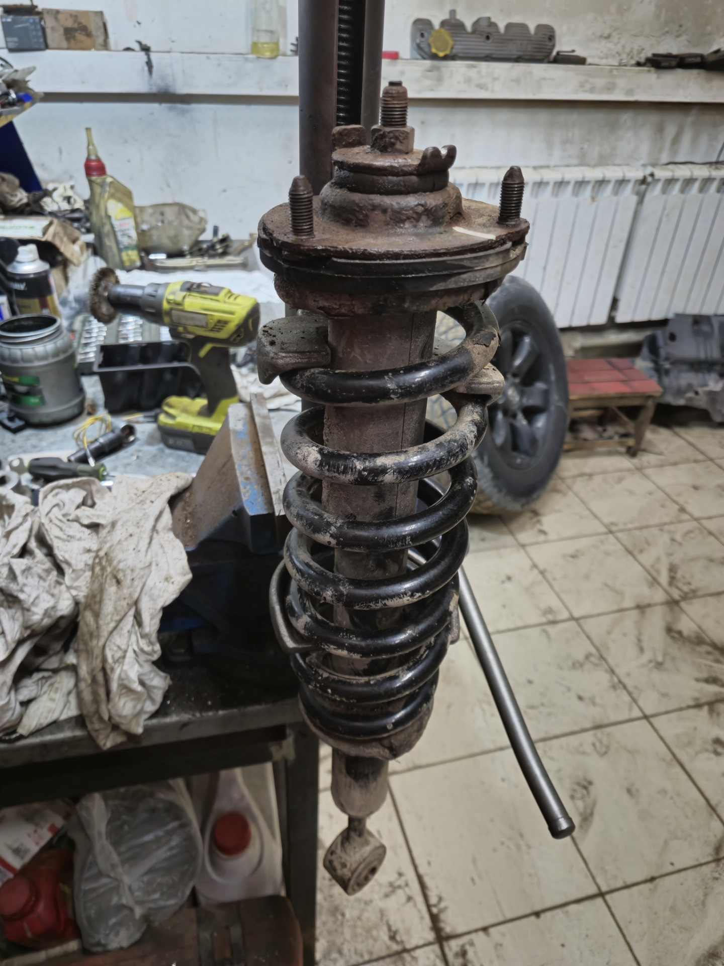 После сборки рычага, принялся за амортизаторы с пружинами. Демонтировал актуатор с правой стойки, и немного огорчился. В нём был обломан шток регулировки.