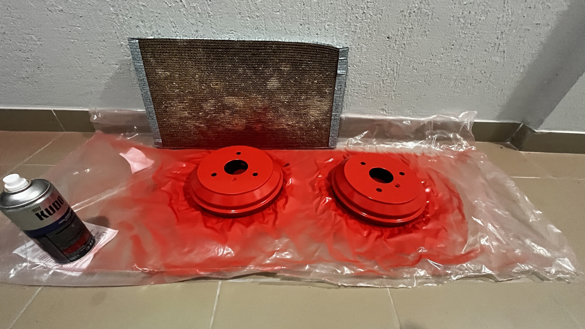 По пути заменил тормозные барабаны, колодки, ремень ГРМ, хотя старый оказался в отличнейшем состоянии, оставил в запас, заменил ремень кондиционера, родные гайки колес 15ые, заменил на 17*, что бы не мучать работников на шиномонтажках))