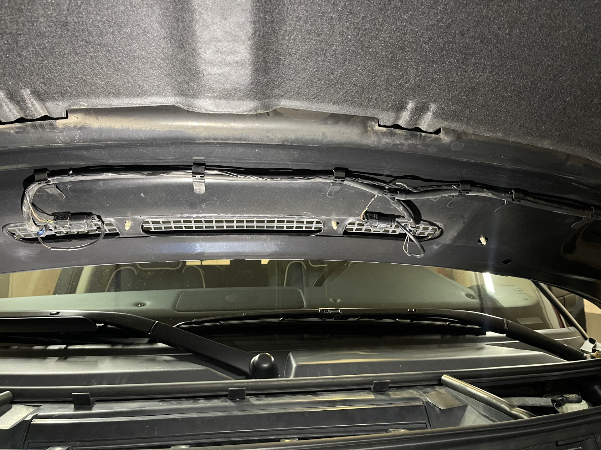 Под капотом обвис тепловой экран и сломаны крепления трубок омывателя.