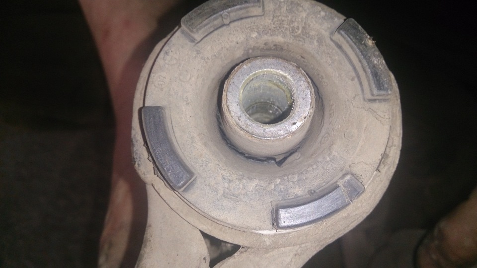 Первым делом решили скинуть полностью рычаги. Как оказалось — подозрения были не напрасные — умерли задние сайлентблоки на обоих рычагах.