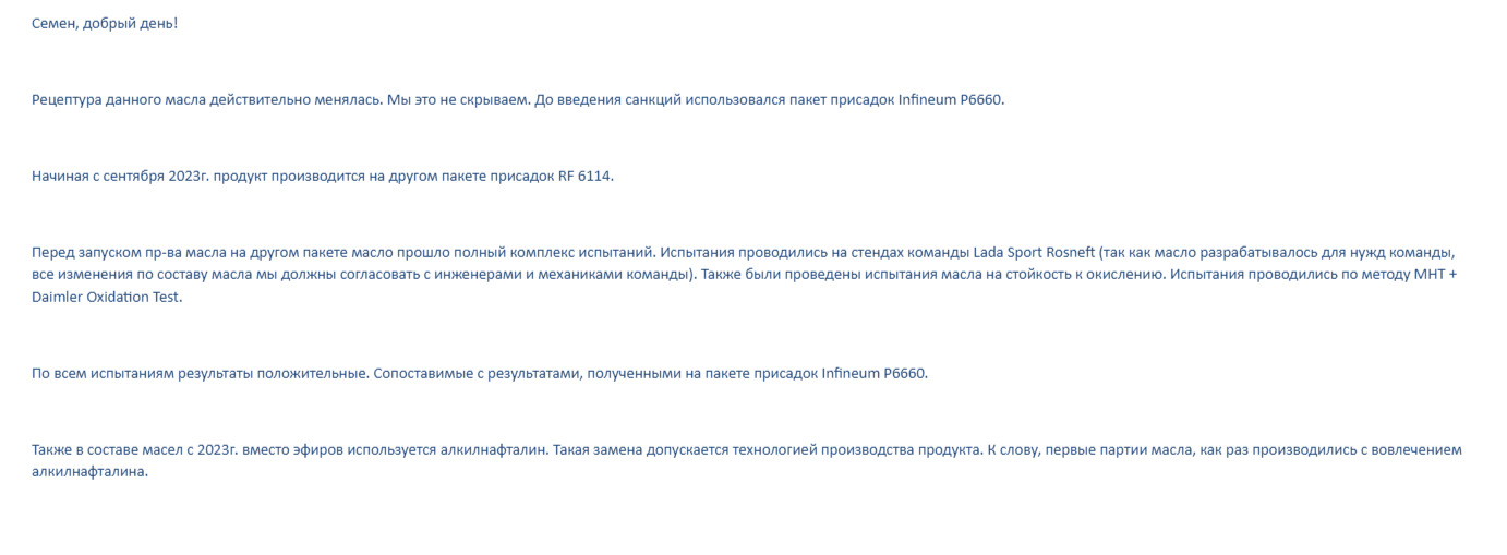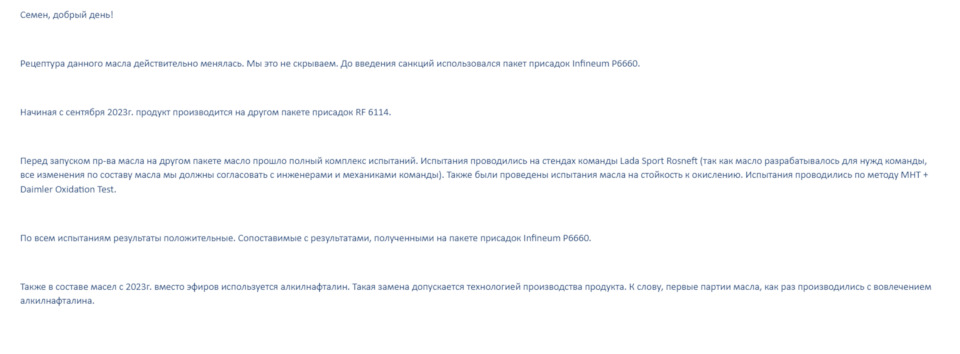 Я не утверждал, что оно испортилось. Ваш пост основан на лабораторных тестах 2021 года, когда масло имело другой состав. Вот о чем речь. Поэтому было.