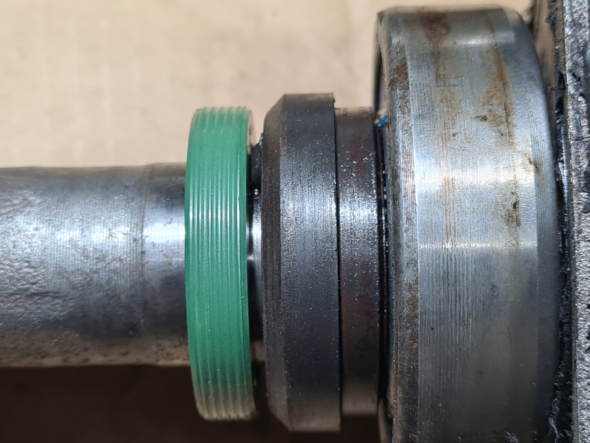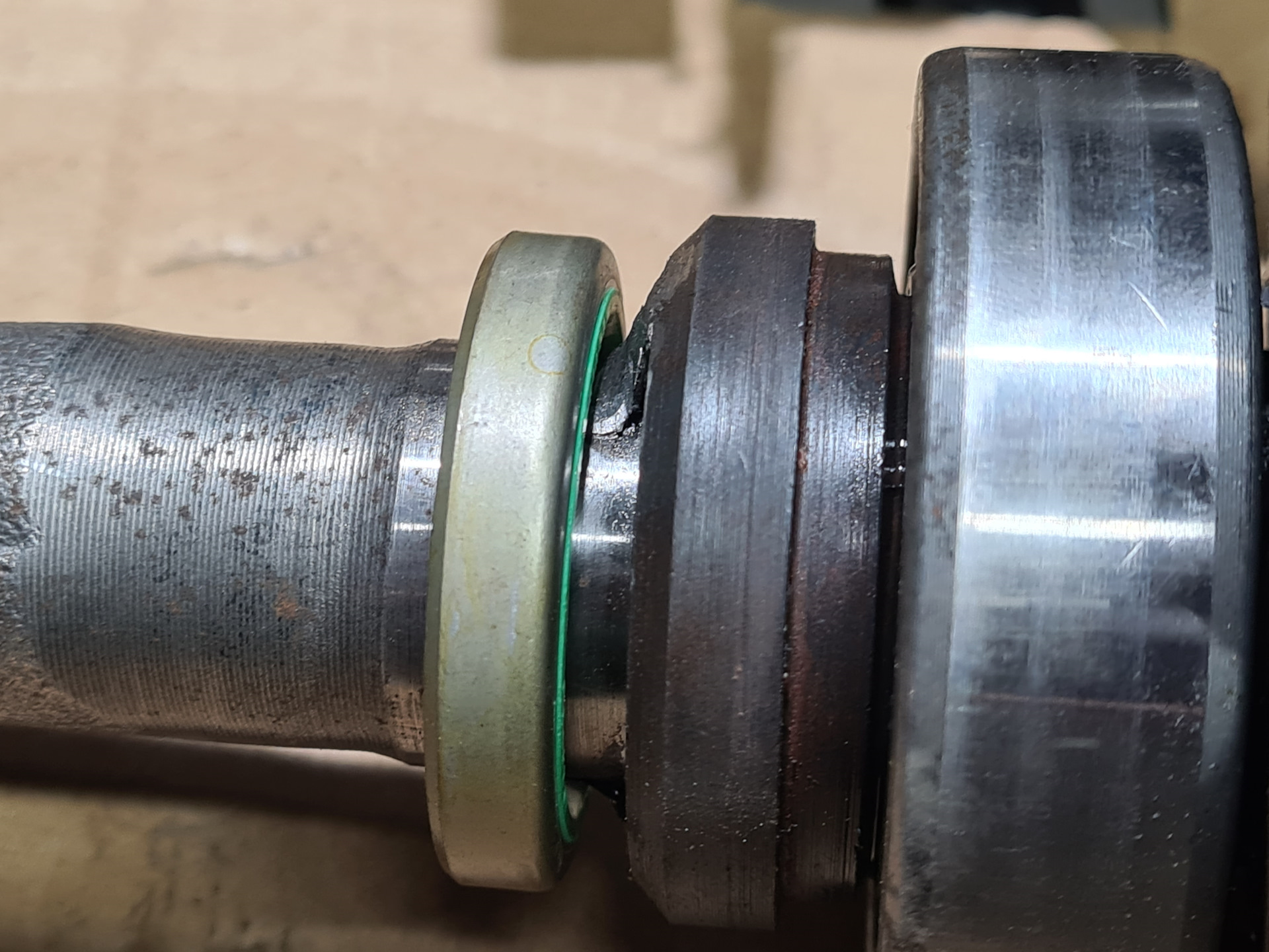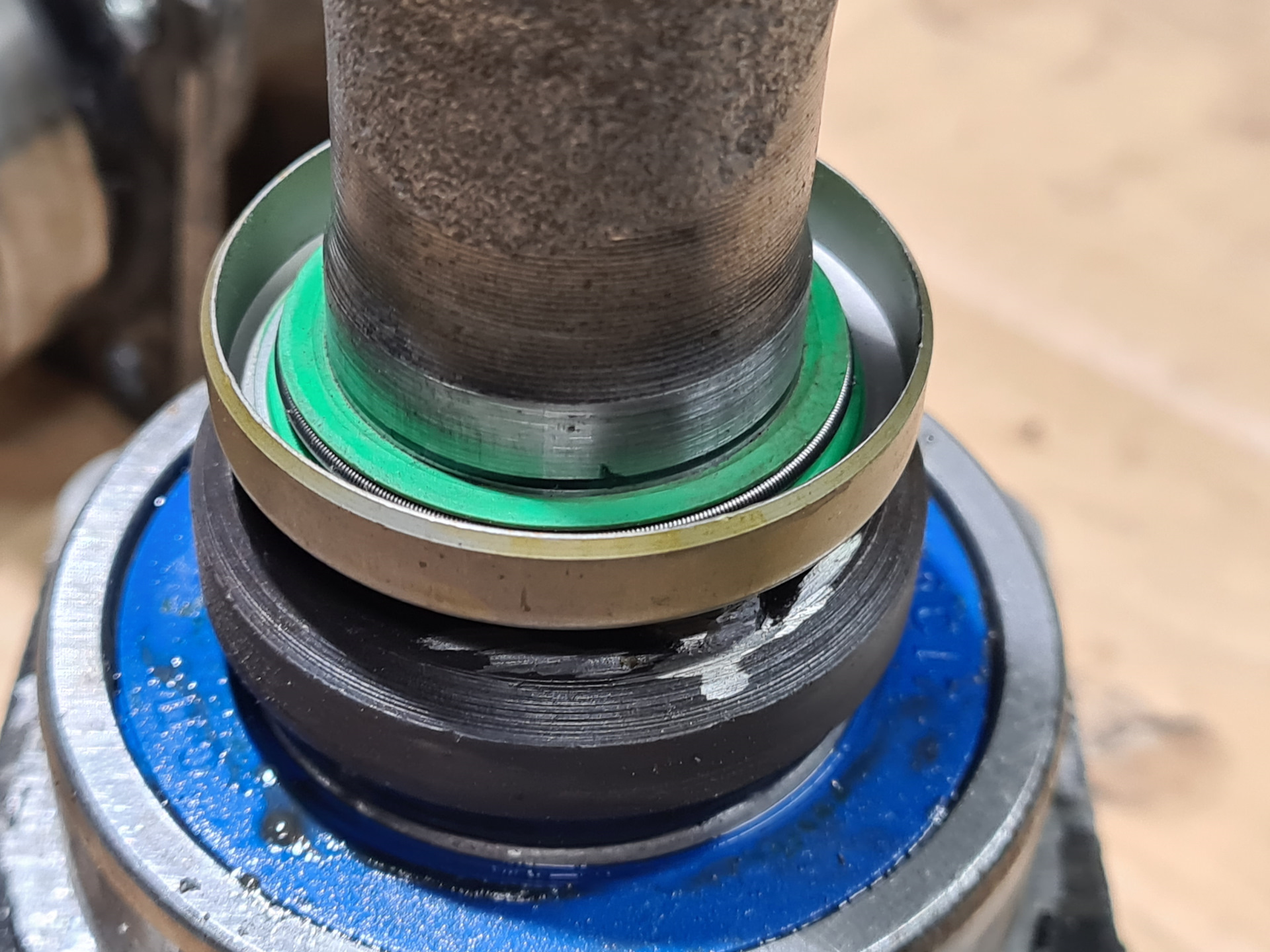 Воткнул свою "вареную" с уже подпиленной сваркой. На штатном сальнике зазор мизерный.