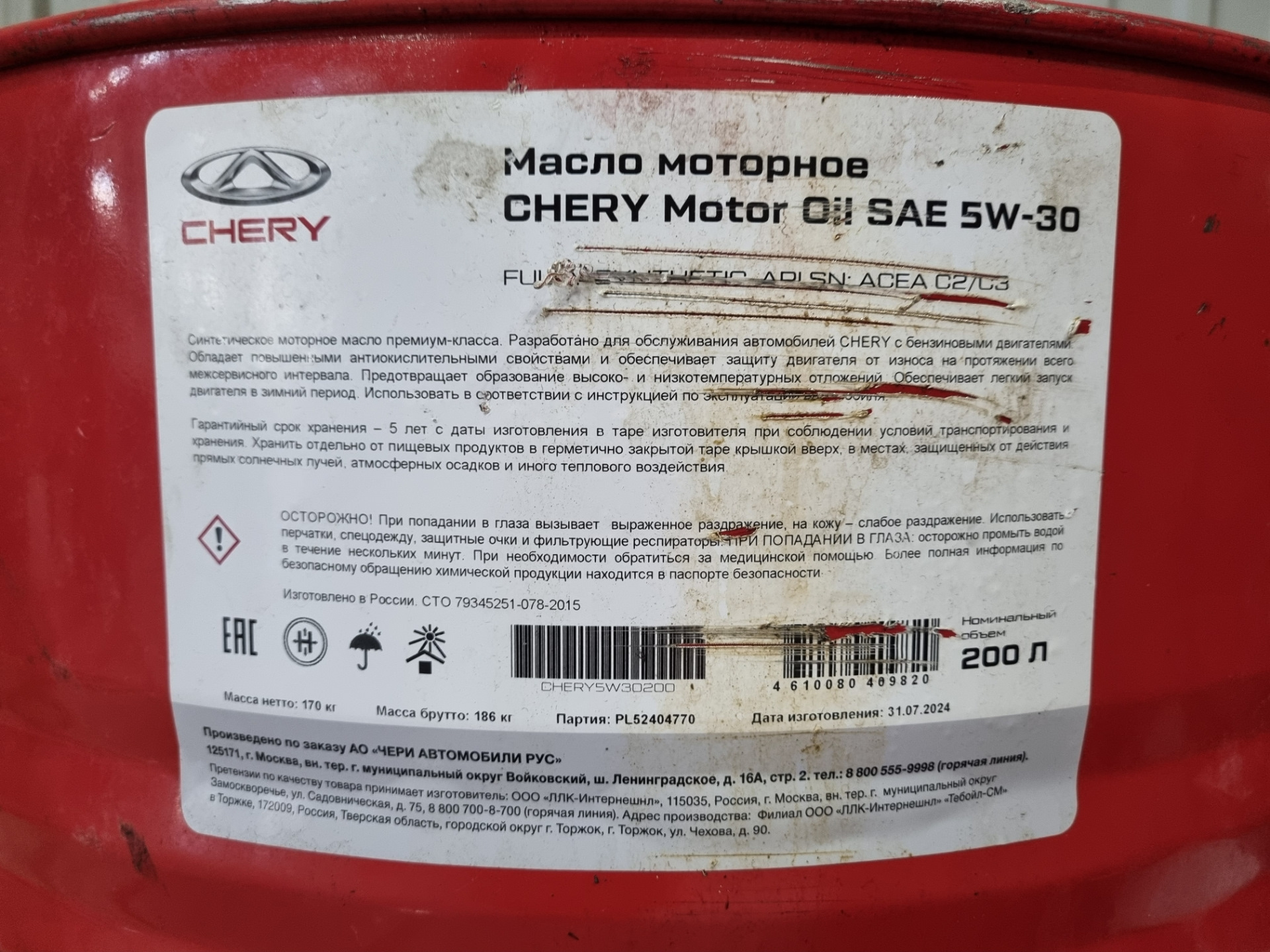 Защиту двигателя перед ТО я снимал сам, потом сам же и поставил. Масло и фильтр дилерские. Фильтр синий, оригинальный чери. Масло тоже "оригинальное" чери, но на красных бочках с белым логотипом чери наклеяна бумажка, в которой написано, что масло изготовлено на заводе Лукойл по заказу Чери-Рус.