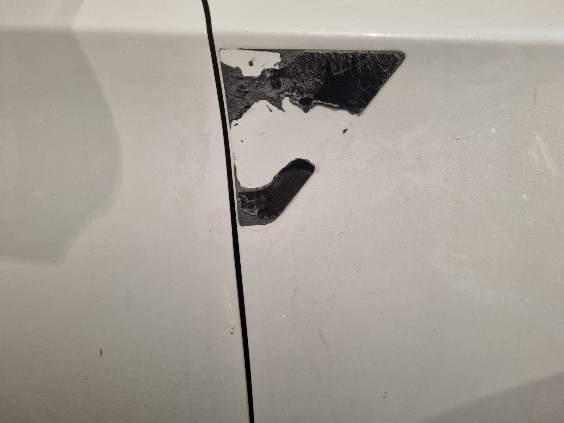 Ну а раз нравится без, приступаем к удалению ненужных частей. Леска, уайт-спирит и обезжириватель нам в помощь. Сняв треугольник, я немного прифигел! Скотч прилегал не по всей поверхности накладки, т.е. между крылом и накладкой со временем скапливалась бы грязь. Да и потёки после мойки были бы постоянно. В общем, я не пожалел о том, что их удалил.